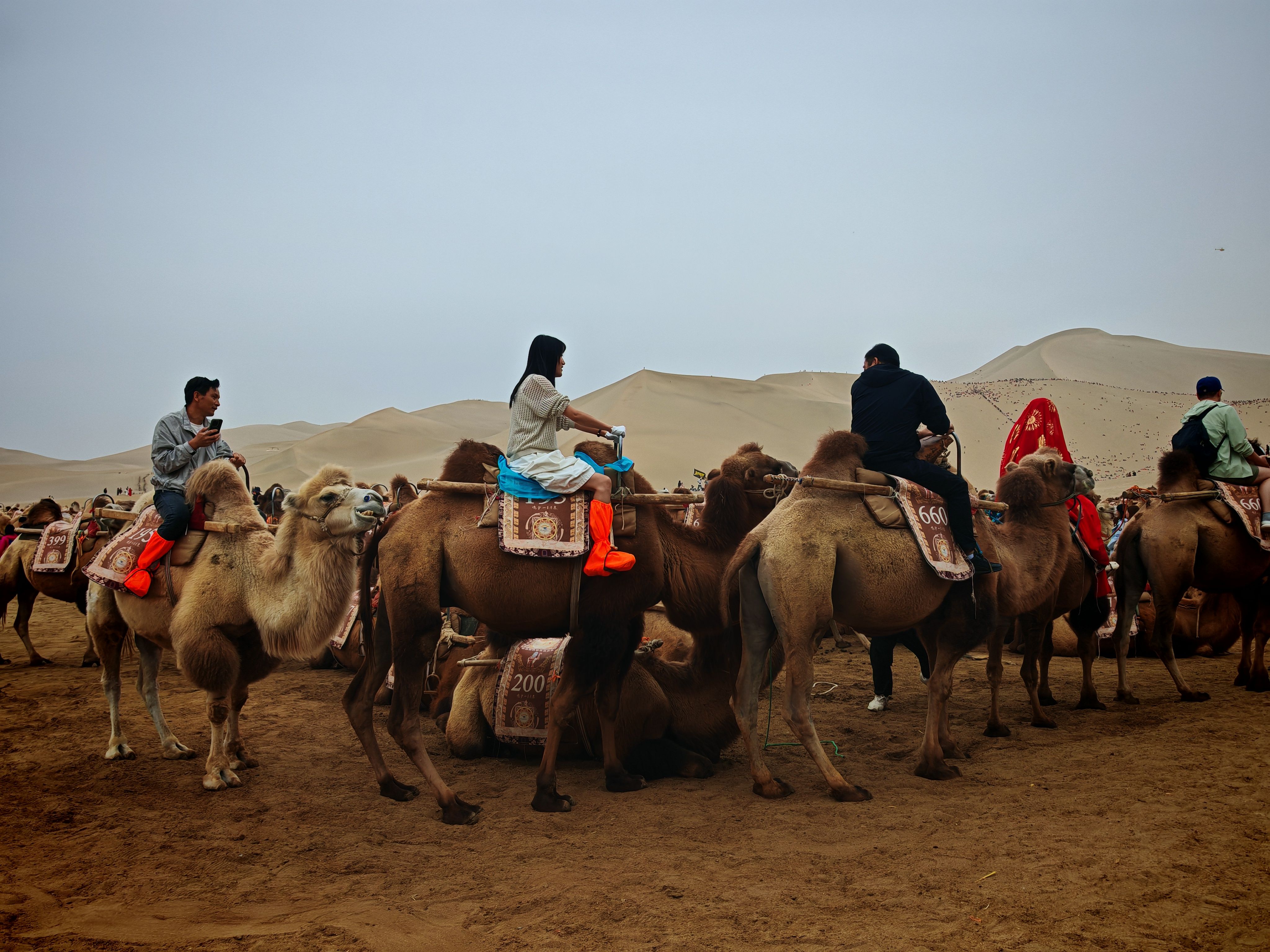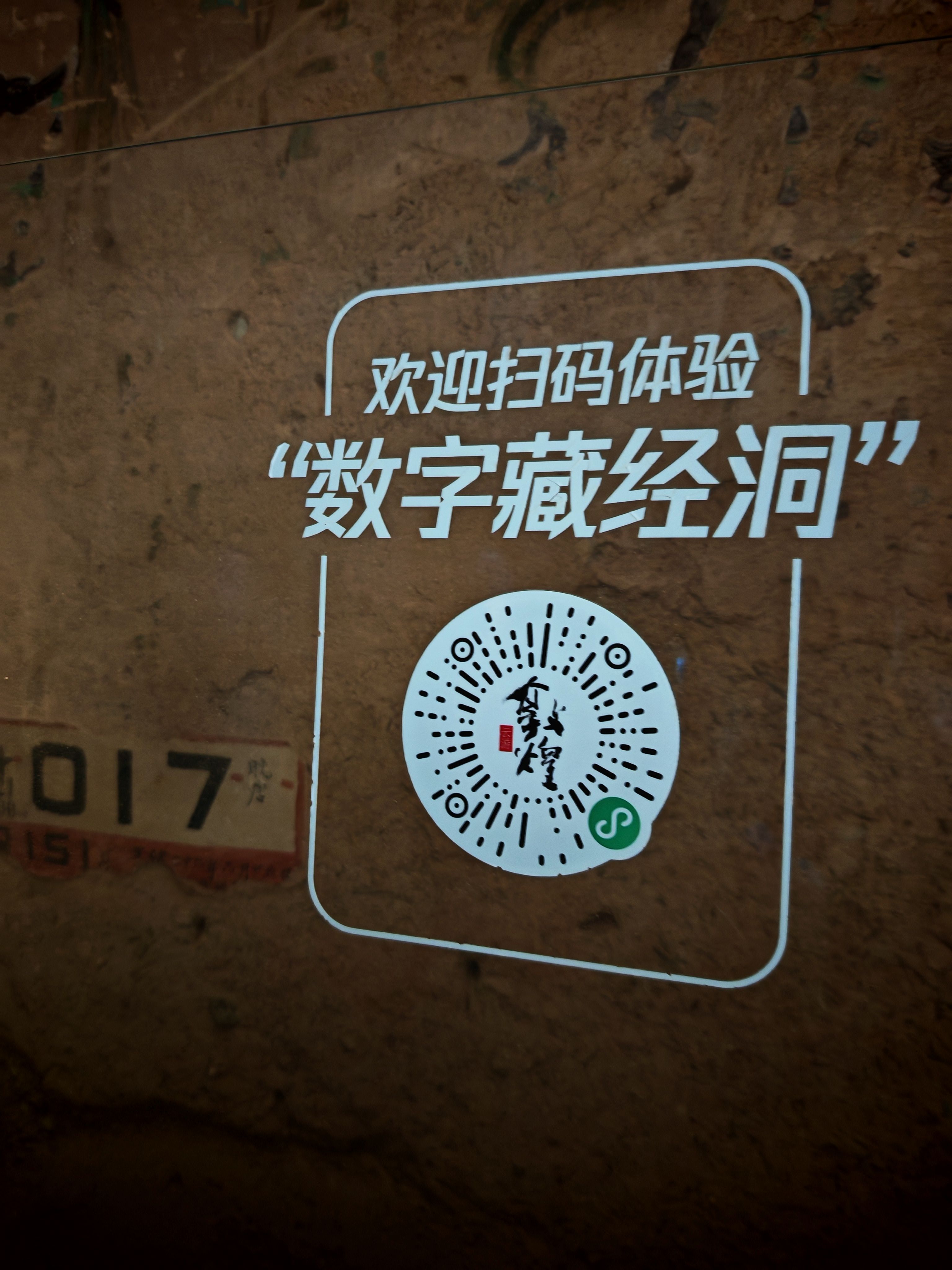 莫高窟参观结束已经中午12点了。吃过饭就去了阳关,对西出阳关无故人的诗句很有情怀,所以即使是废墟也要去走走,走过路过不要错过吧。敦煌市区到阳关60公里,来回要2小时,到达鸣沙山月牙泉已经下午17点,人很多都是来看晚上的星空演唱会,停车位都找了半个小时。演唱会19点30开始大概10首歌曲21点10分结束,特别在沙山上看夜晚的月牙泉很有感觉,值得一看。在景区人生第一次骑了半小时的骆驼,敦煌一天的行程收获满满吧。说下骑骆驼价格130元一个人,涨价了哈。另外演唱会在淡季是每周一三五,有计划去的朋友可关注景区公众号,关注演唱会变化。附上数字莫高窟的二维码给喜欢的朋友。