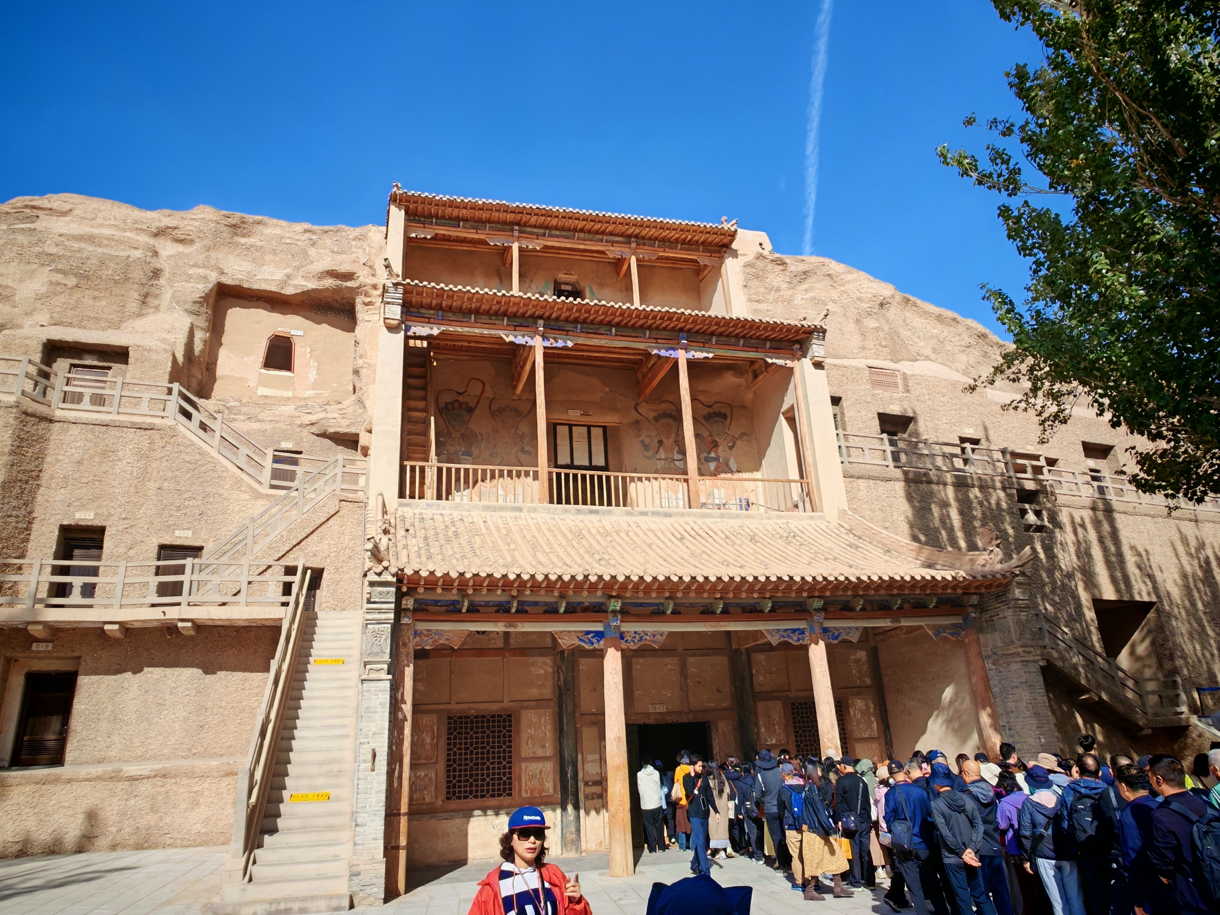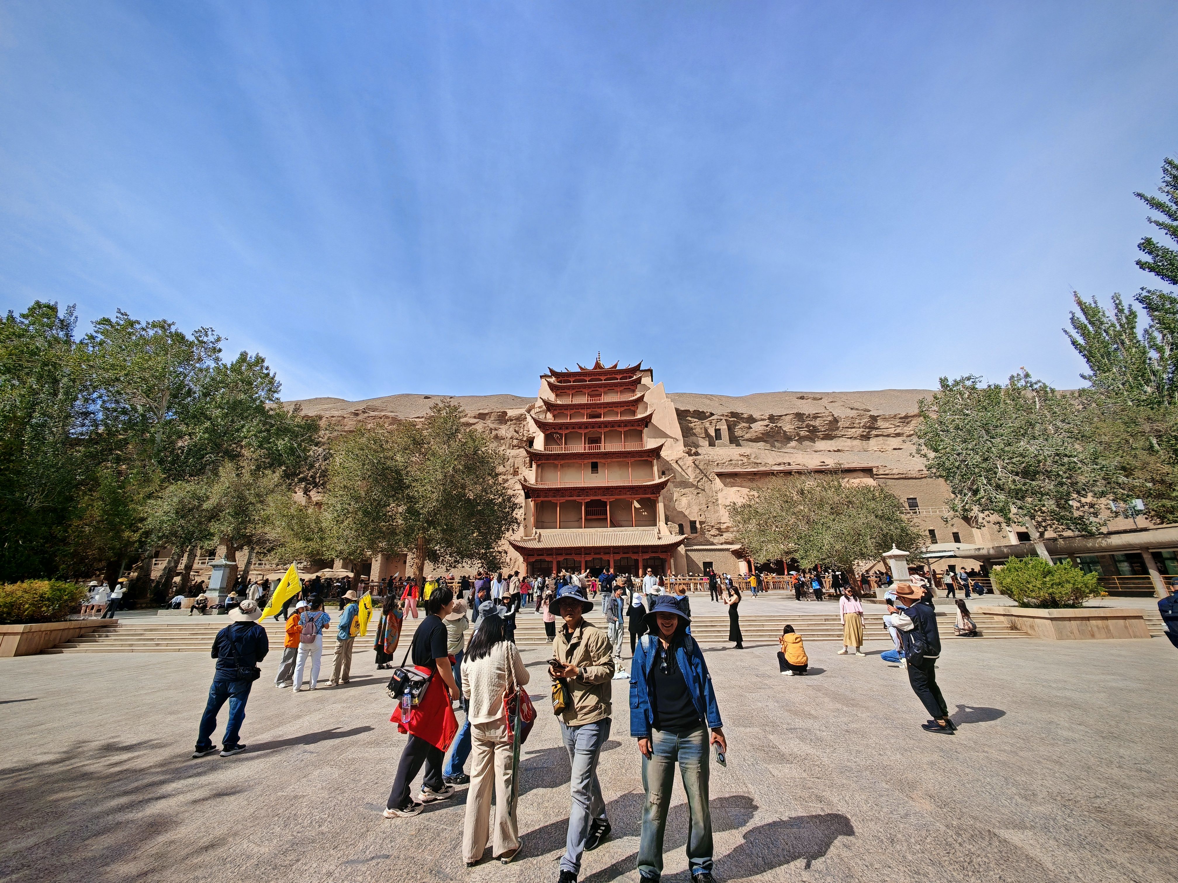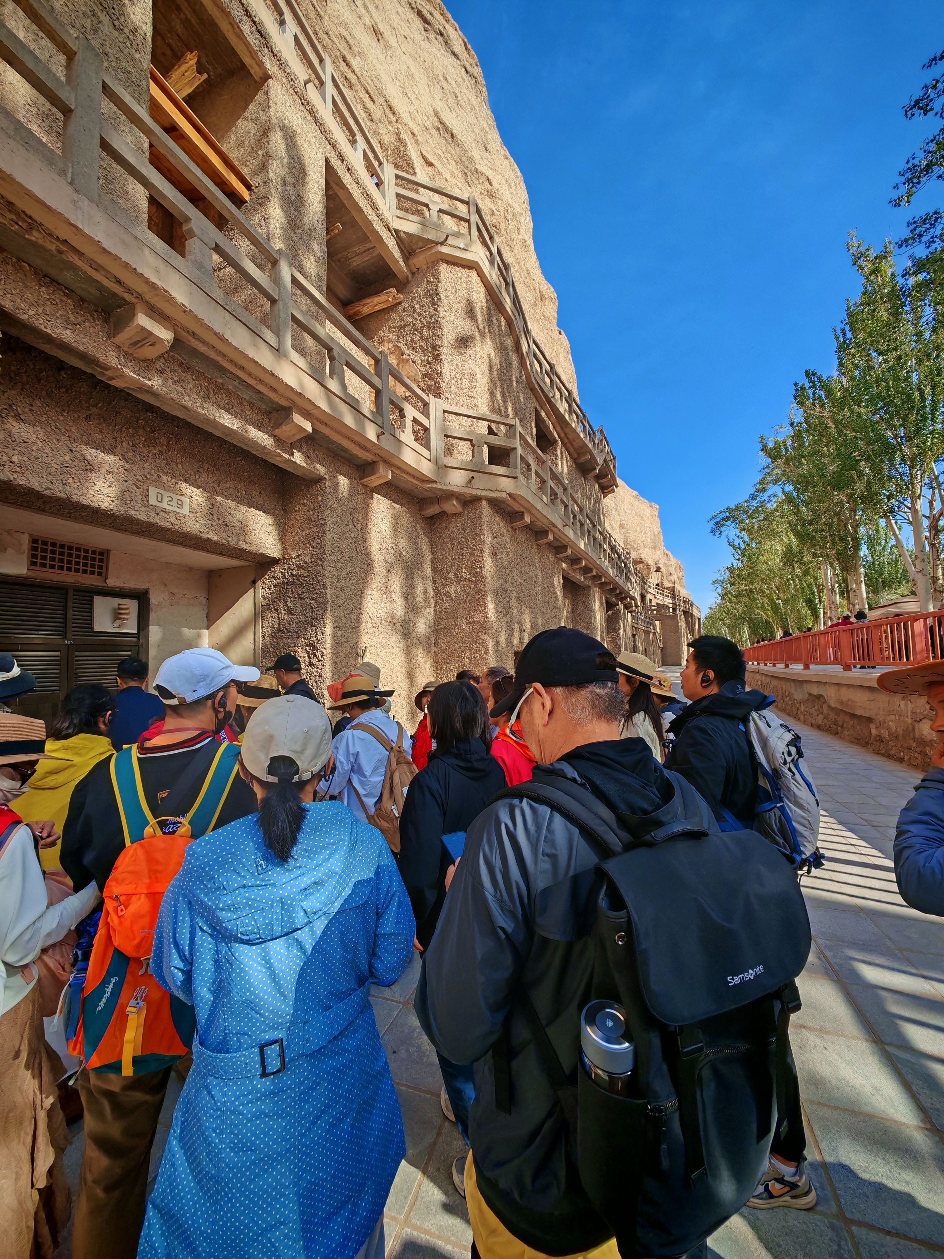 早上8点出发去莫高窟,提前20天买好的常规票,莫高窟是河西走廊热门景点且处于保护目的,每天常规票只有6000人,所以当天买不到常规票的,可以买应急票。进入景区取票后排队进入数字观影厅(1号展馆),看河西走廊敦煌纪录片和洞窟摄影1个小时,让游客快速了解莫高窟的前世今生,还是很不错的。然后坐大巴车去洞窟参观,常规票总共参观了9个洞窟包括17窟藏经洞,有专门景区导游讲解。历经千年的洞窟艺术确实让人震撼,人生有机会还是值得一来看看!9月淡季排队时间不长,另外景区数字馆有8个复制窟,也值得一看。