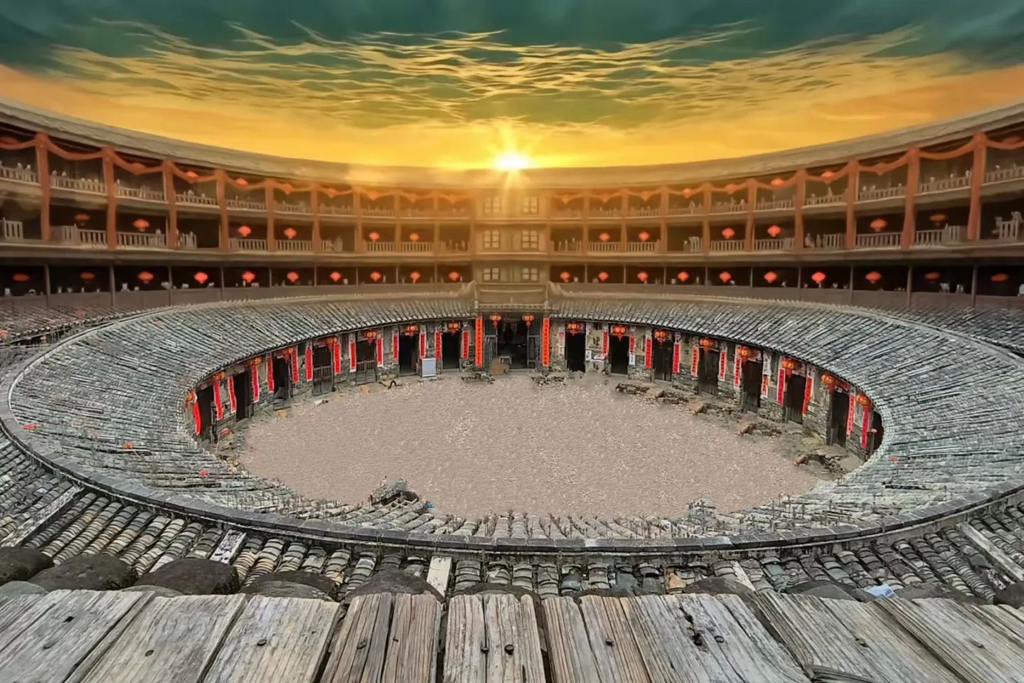 - 花萼楼呈完美的圆形,内外三环相套,中心为祖堂,体现了客家民居“聚族而居”的传统。