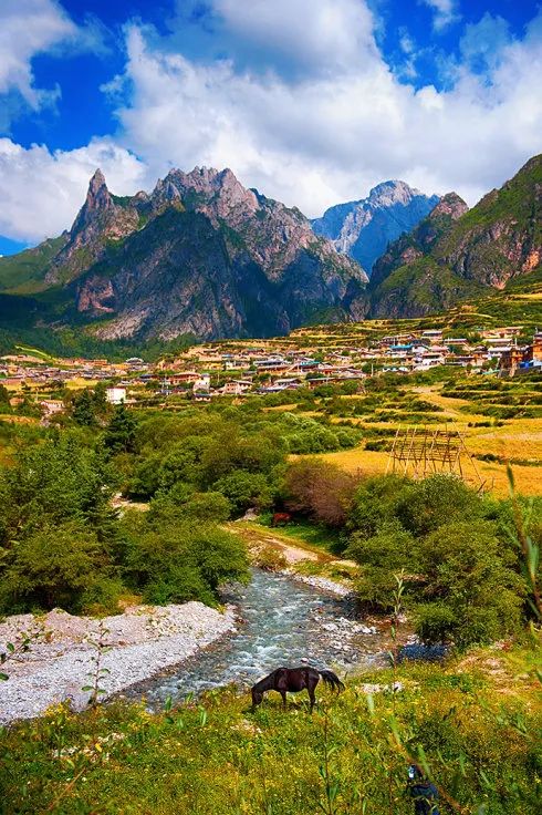 在甘肃南部的迭山深处,有一座天然的“石头城”——扎尕那。这里四面环山,云雾缭绕间,藏式村落依山而建,宛如世外桃源。清晨,第一缕阳光洒在错落有致的木阁楼与经幡上,炊烟袅袅升起,牦牛与羊群在草甸上悠闲漫步。沿着山间小径徒步,你能看到原始森林、高山草甸、峡谷溪流等绝美景色,仿佛走进了陶渊明笔下的“桃花源” 。这里没有熙熙攘攘的人群,只有宁静的村庄、虔诚的藏民,以及大自然最纯粹的模样。