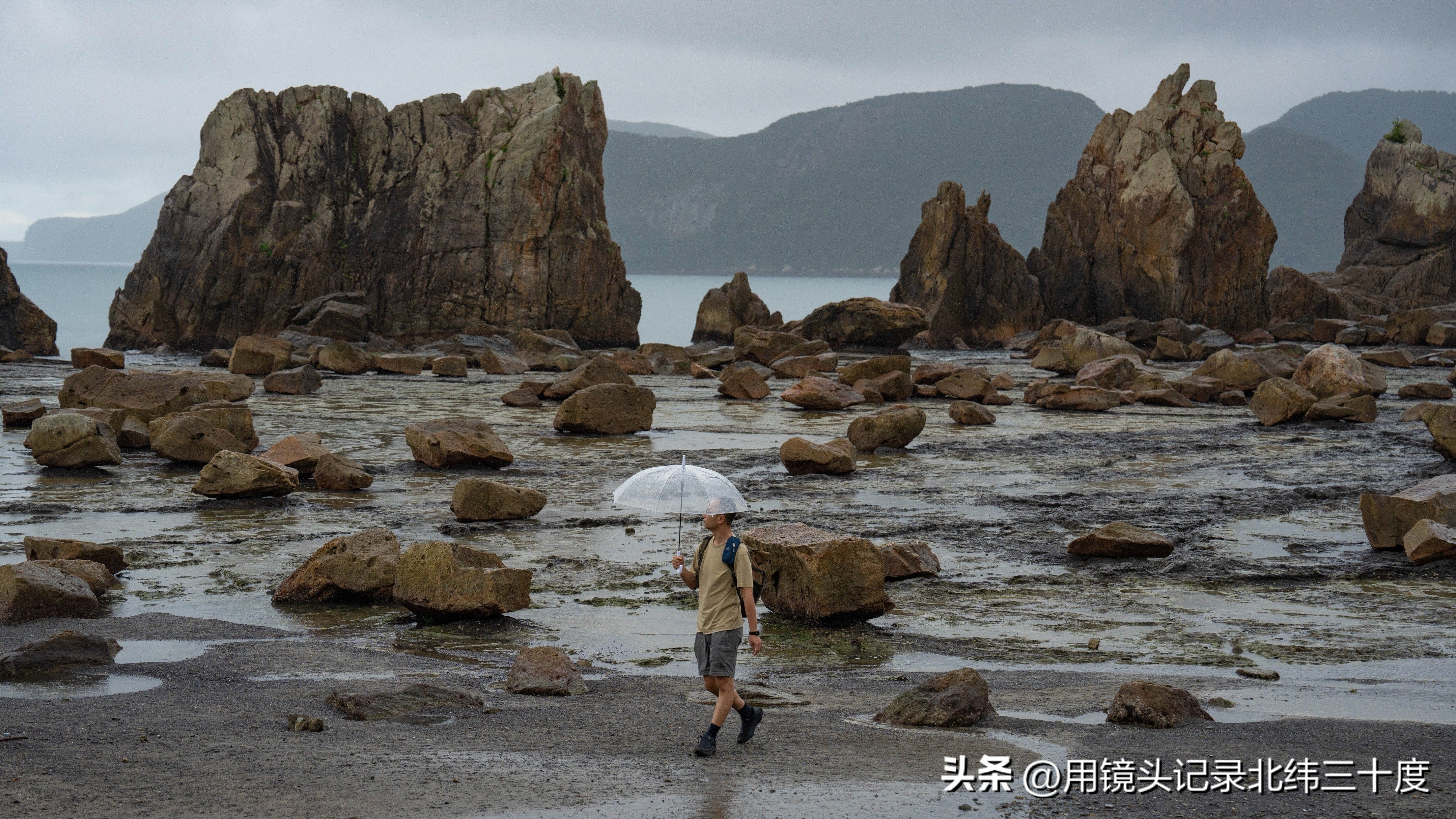 而整个白滨,我们是去了两个点,一个是千叠敷,这是一个严重风化的地方,我们在这边走路拍照。感觉有一种沧桑和壮阔的美,整个人灰色的岩石里打着伞,感觉进入另一种地貌。而我们很多时候也会走到悬崖边,任由海浪在底下的岩石拍打着。