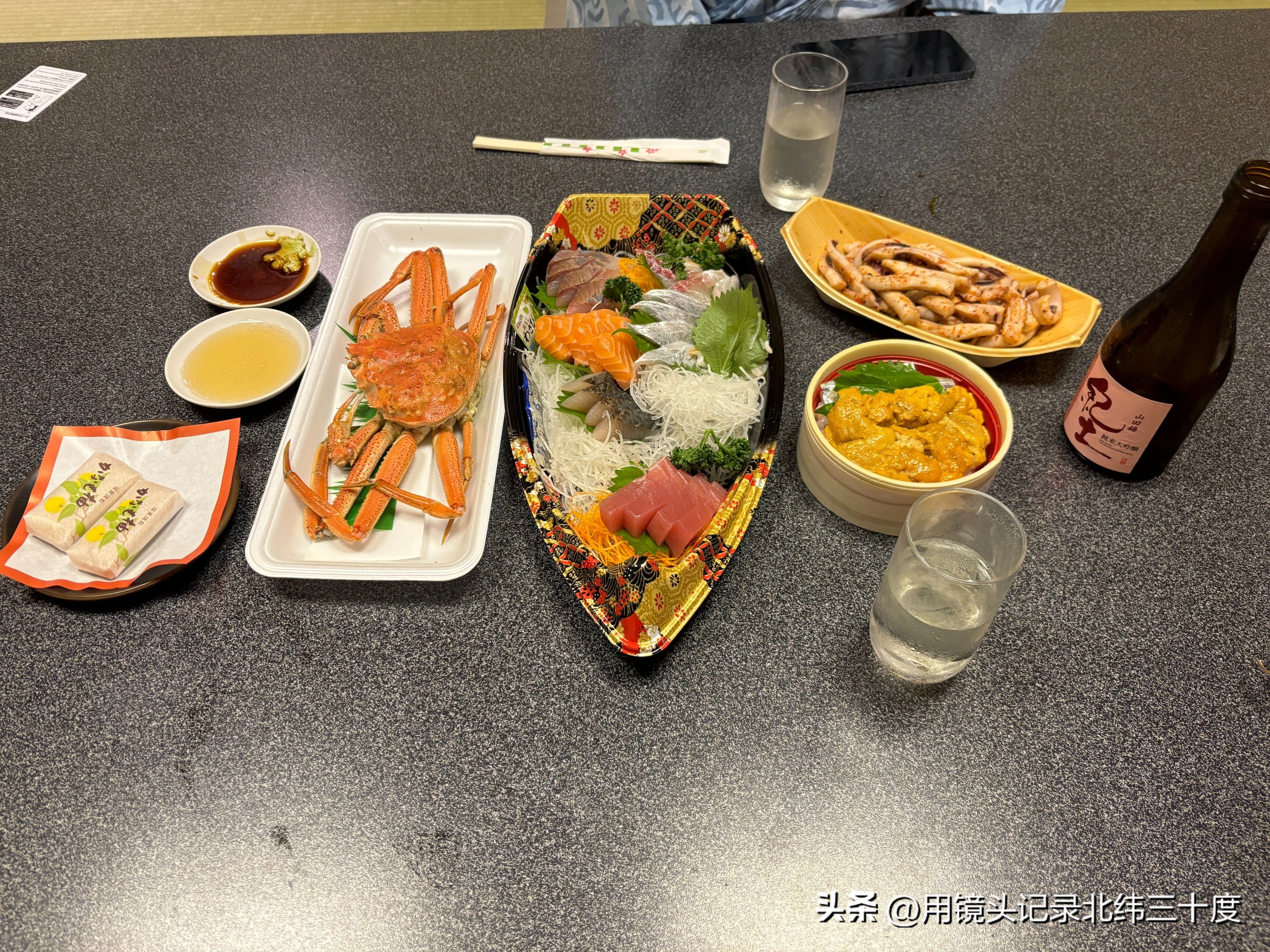 我们拿了一个松叶蟹,松叶蟹不算太大,但是新鲜,而且有仪式感;寿司拼盘比较新鲜,大概有七八种刺身,胜在丰富;烤物量也还是比较大。今天的主食一个是海胆拌饭,海胆是比较新鲜,米饭上铺满了海胆,入口有海胆的鲜香味,但是没有腥味。除此以外,我们还买了日本当地的麻薯,也是糯糯唧唧的,较为好吃。