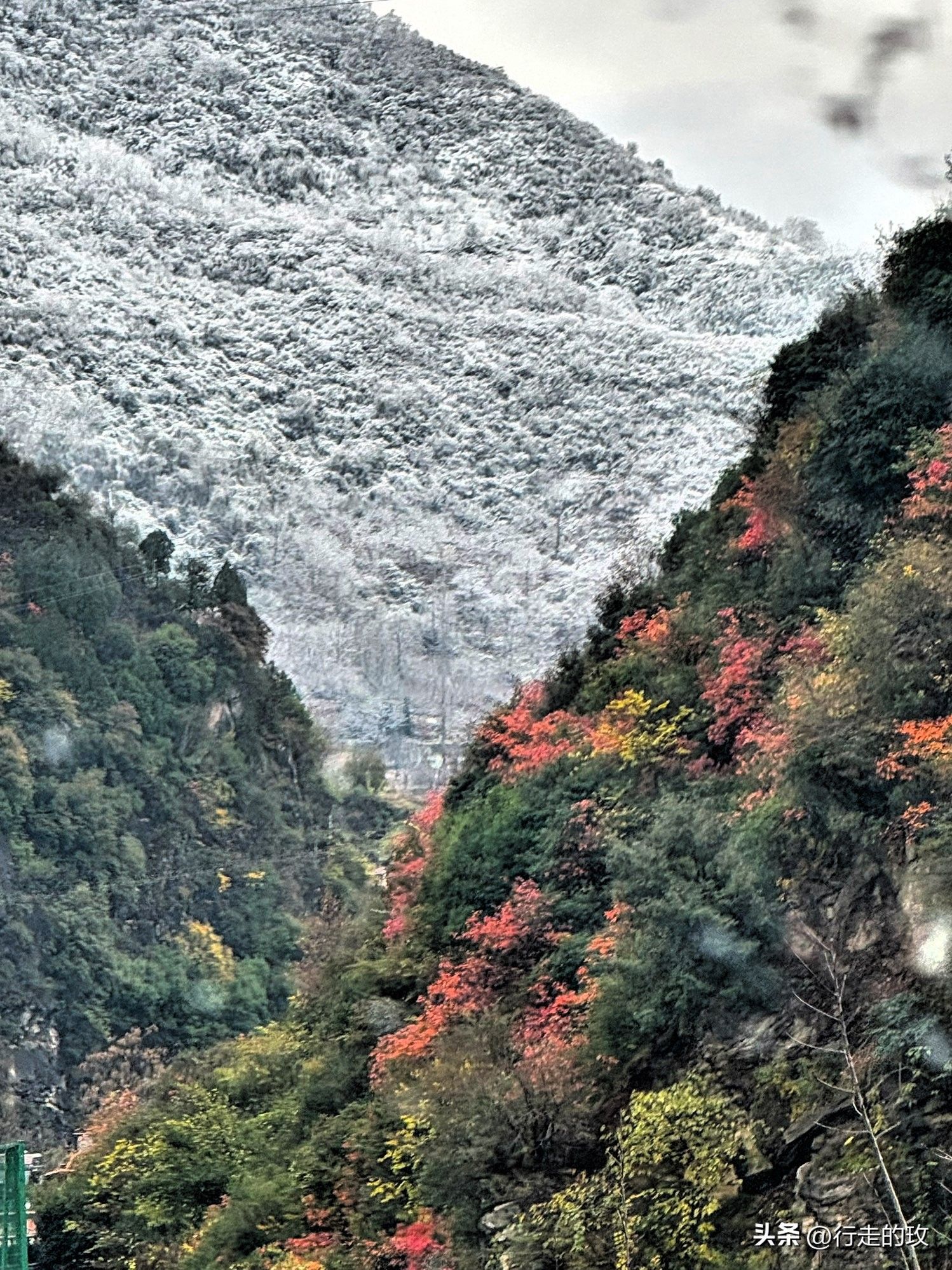 今天是赶路的一天,虽然没有安排景点,但秦岭秋的尾巴和今冬的第一场雪景却被我们幸运的赶上了。