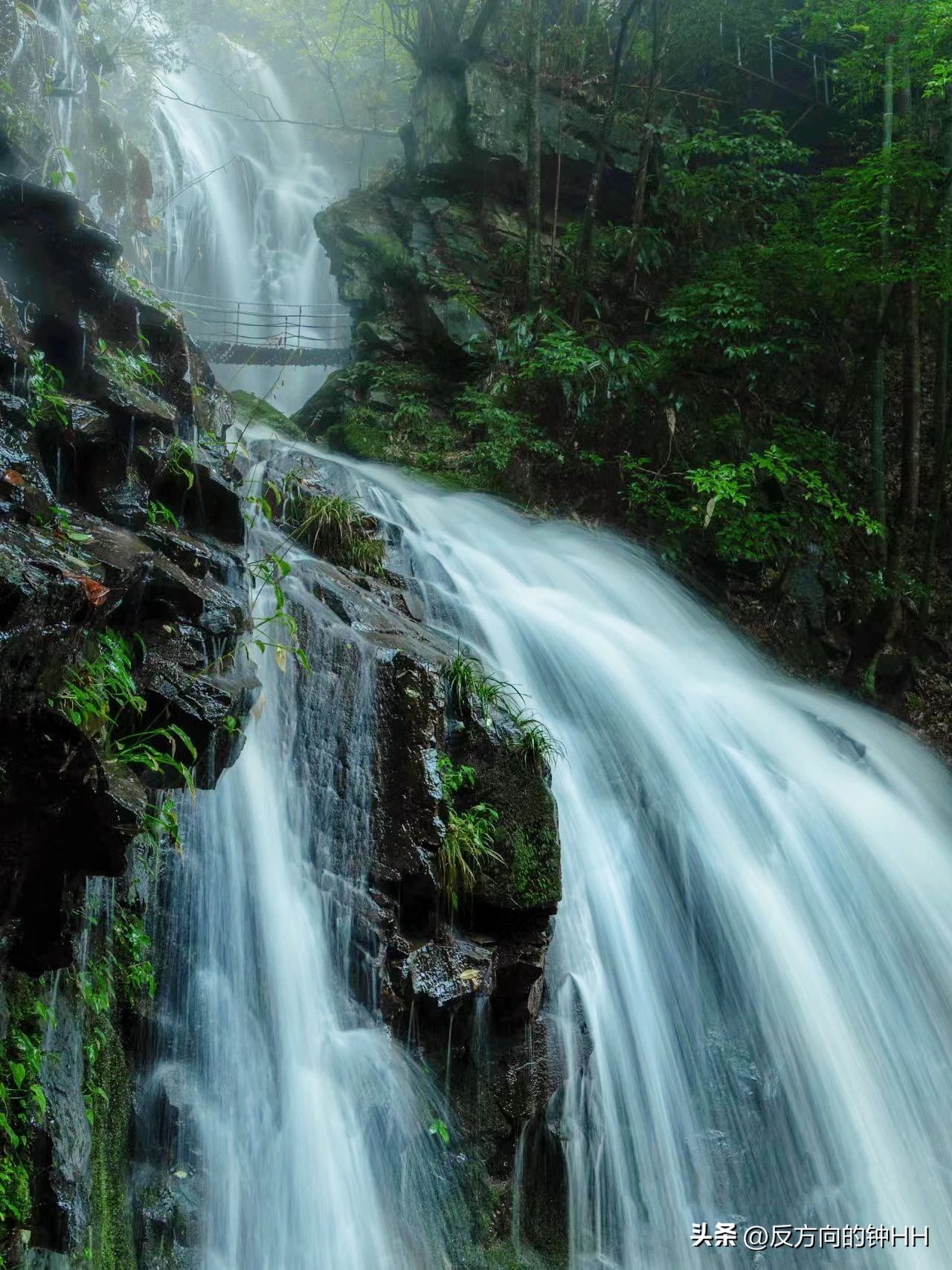 这是一处超治愈的绝美瀑布,位于杭州市临安西天目山的西游瀑布营地附近。刚来到此处,就被眼前这处由大自然精心刻画的动态美震惊住了。清新的空气带着丝丝凉意,混合着自然草木气,每一次呼吸,都是身体和灵魂的双重洗涤。