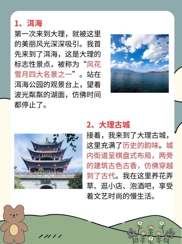 我的大理之行让我深刻体验到了这里的魅力。如果你也想去大理周边游玩,这些景点都是不错的选择。相信你一定会在旅途中找到属于自己的惊喜和感动。