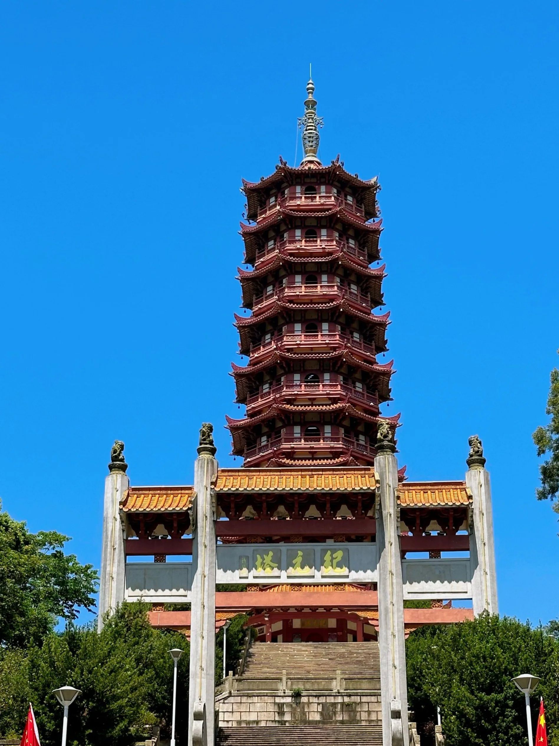 这座塔是大雁山的标志性建筑,于1993年建成,为纪念鹤山撤县设市而建。塔高53.8米,共9层,外观雄伟壮观,融合了传统建筑风格与现代工艺。站在塔下仰望,飞檐斗拱、雕梁画栋,每一处细节都彰显着工匠们的精湛技艺。登上纪元塔,极目远眺,鹤山城区的全貌尽收眼底,远处的田园风光与城市的繁华相互映衬,构成了一幅和谐的画面。