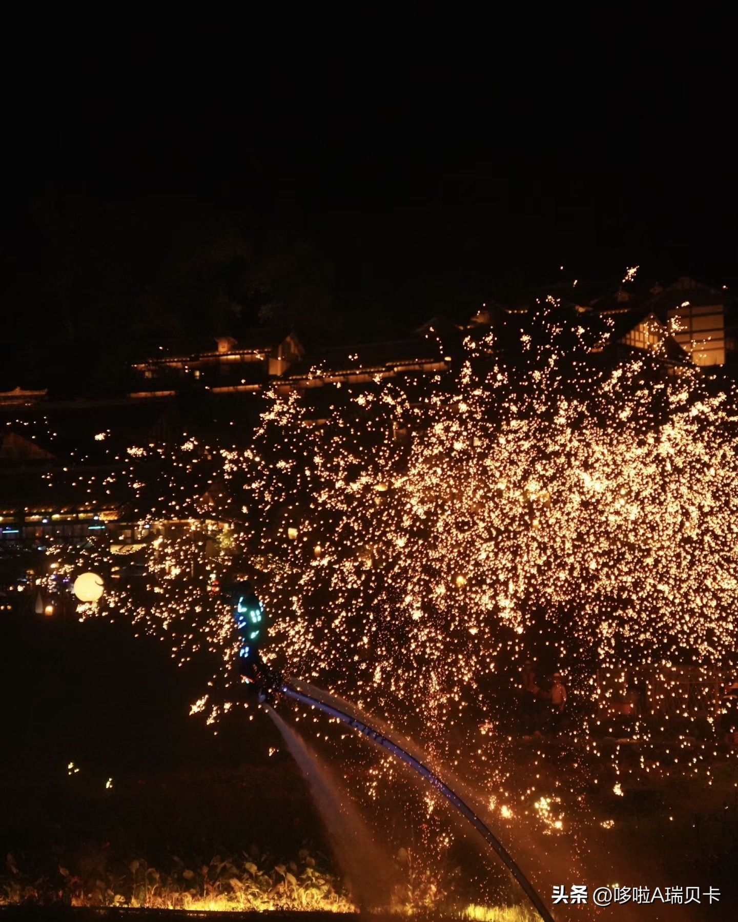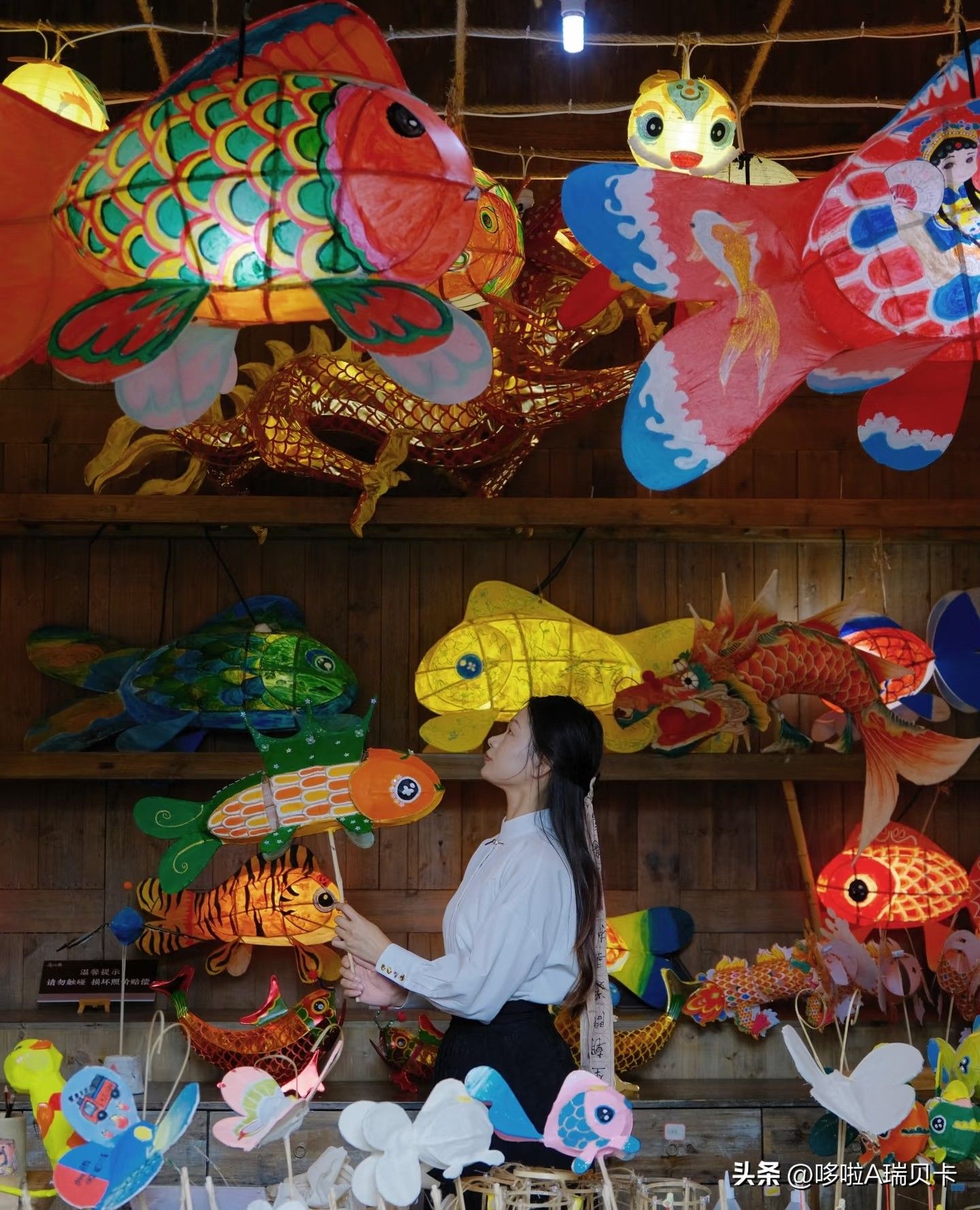 - 到了夜晚,铺前的鱼灯、宫灯一同亮起,暖黄的灯光透过镂空的纹样洒出来,光影灵动,鱼灯仿佛在夜色中“游动”,氛围感瞬间拉满,无论是拍人像还是拍夜景,都能轻松出片,堪称古寨里的“夜景宝藏地”。