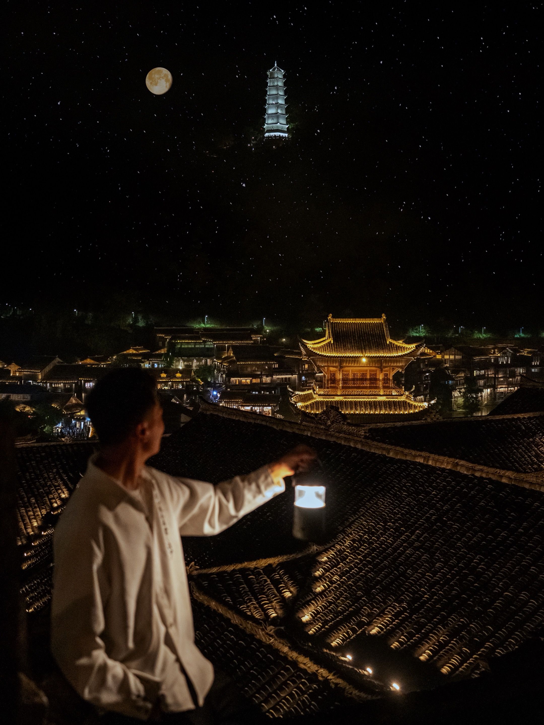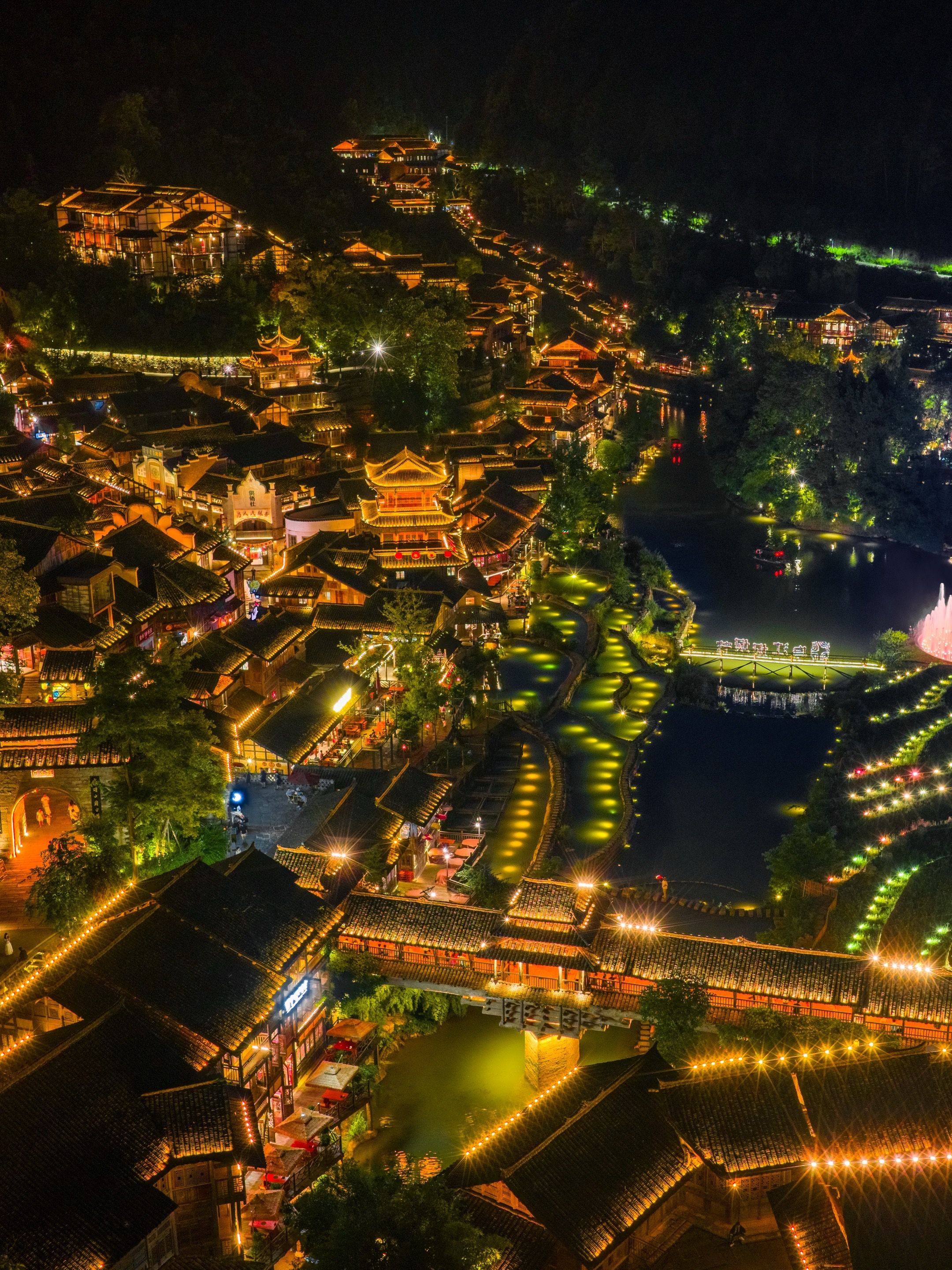 夜游必冲:摇橹船划过灯影江面+民俗闹街巡游(民俗文化体验直接拉满)+火壶火舞秀(火壶不仅有“火树银花”的美丽,更有“百家安宁”的祝福!手机拍不出十分之一震撼!)+万人打跳夜,夜景美到失语~
