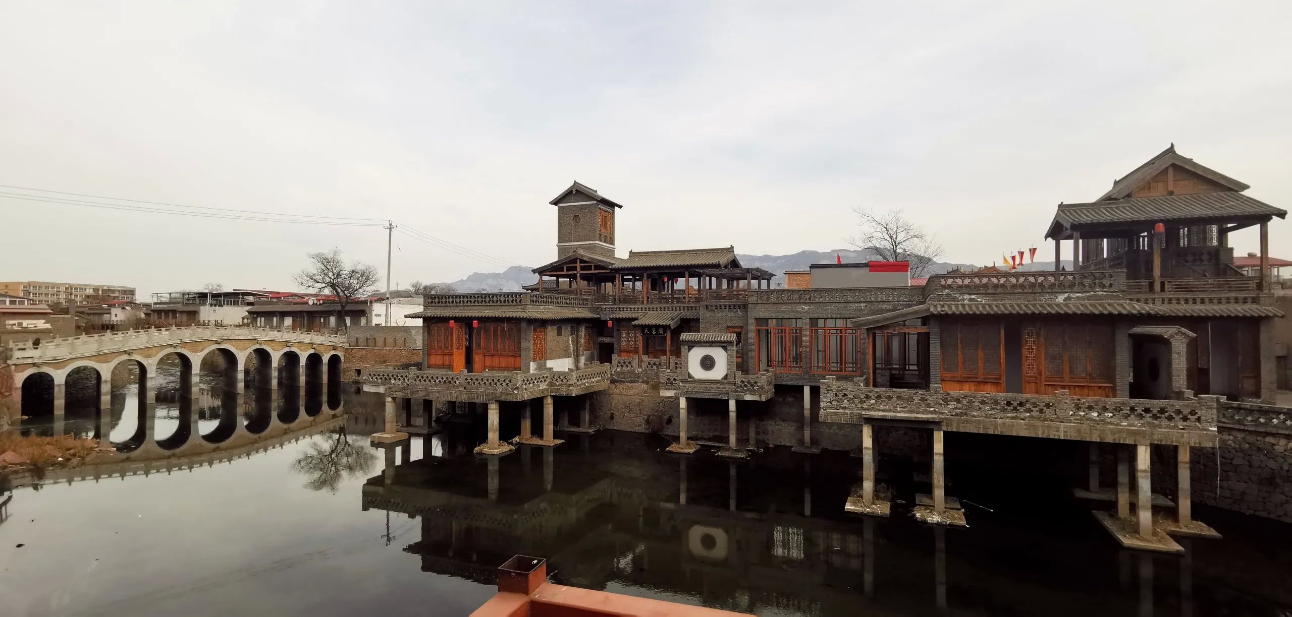 4.导航峰峰老爷山摩崖石刻公园,路过响堂水镇,可以先去镇上吃个饭,我们去的是巫山烤鱼,因时间关系,点了特色面和一盘素拼,量大实惠味道好,值得推荐。镇右侧的响堂水镇现已无人管理,但胜在人少自由,可以开车随意穿梭其中,拍照打卡也是不错。老爷山摩崖石刻公园对面就是南响堂石窟,公园不收费,而且可以看到与南响堂石窟同一时期的北齐雕塑。
