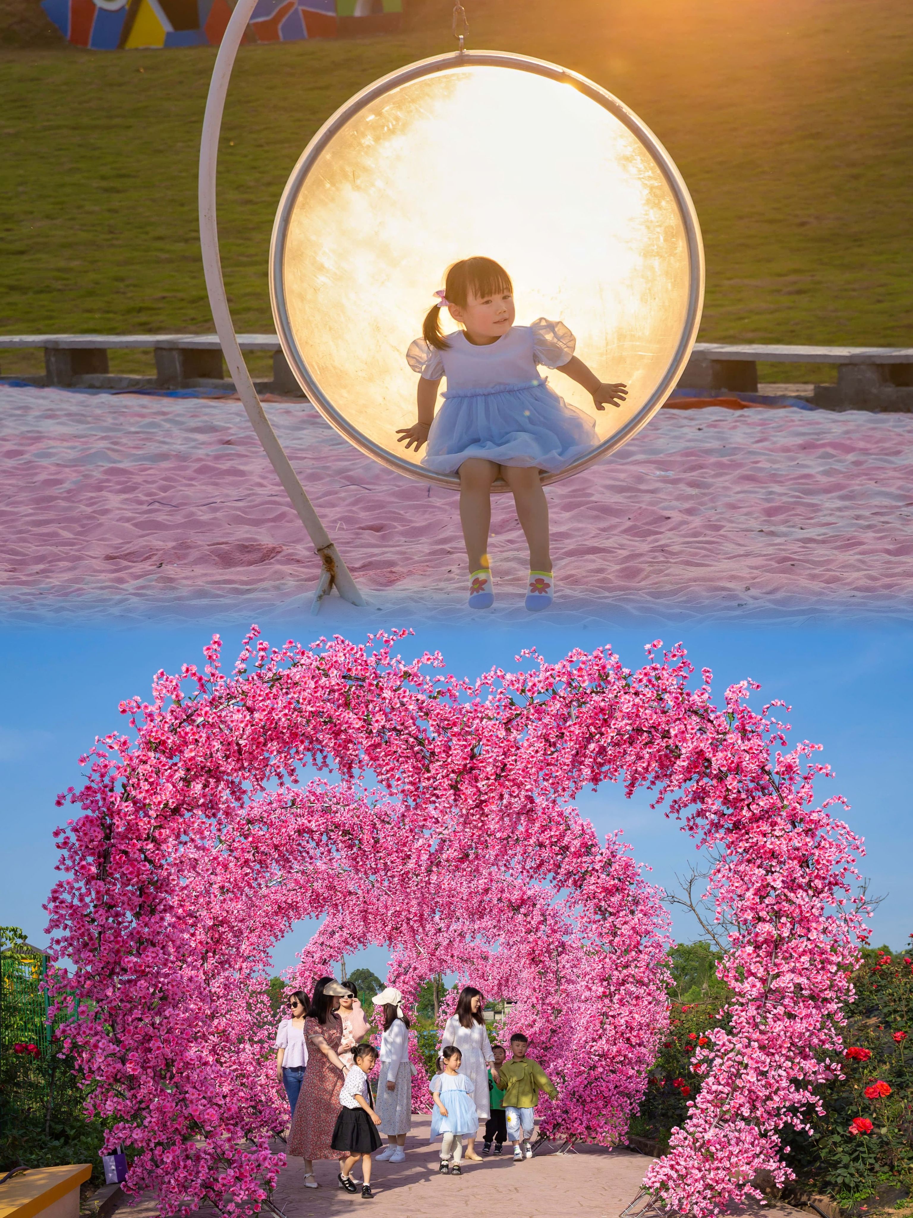- 百万玫瑰成长田园:大型田园综合体,是花的海洋,亲子的天堂!这里以玫瑰为主角,四季都有缤纷的花朵绽放。带着孩子在萌宠互动区和小动物亲密接触,在农事体验区感受耕种的乐趣,亲近自然,享受美好的亲子时光。