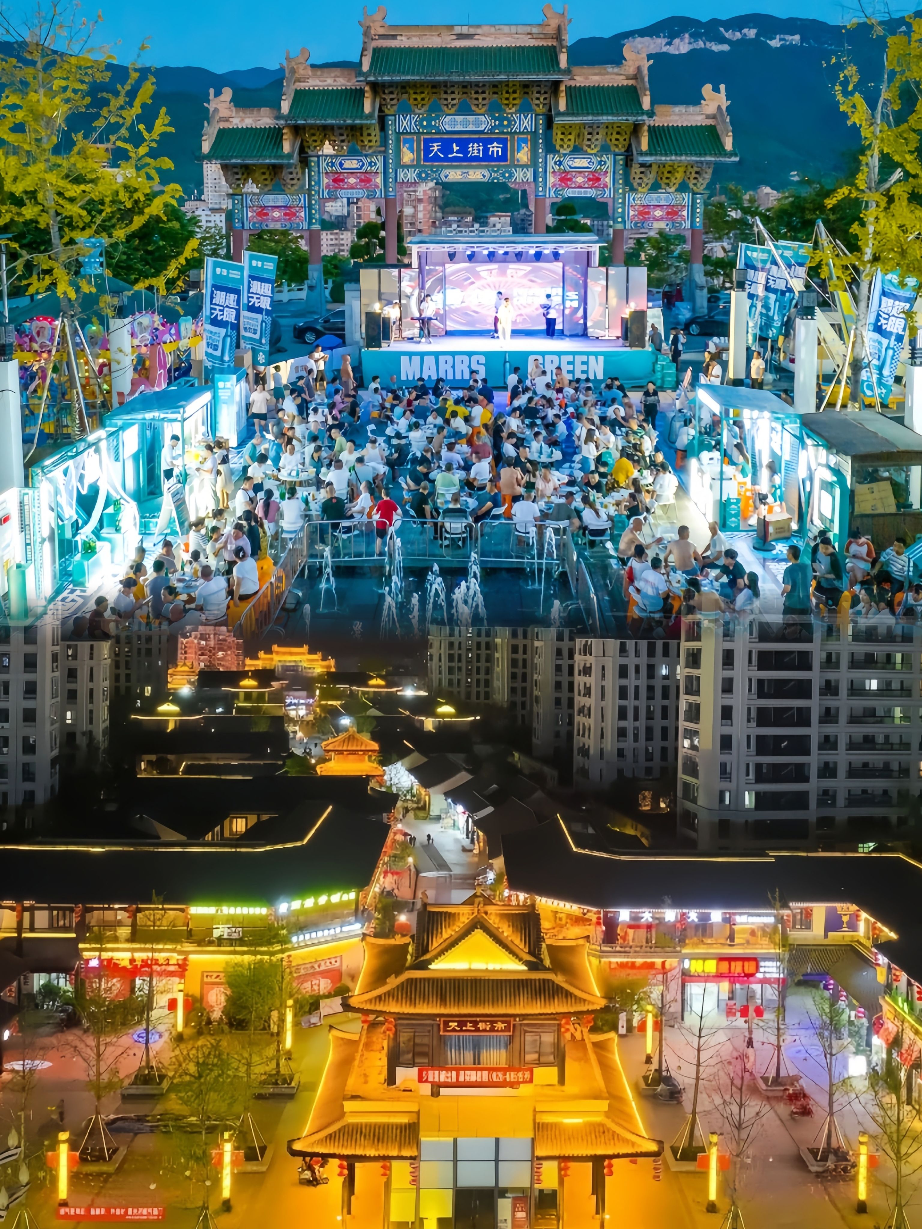 华蓥天上街市:南宋风情古街,夜晚千盏灯笼一同亮起,瞬间氛围感拉满!漫步在古街上,品尝各种特色小吃,挑选一些精美的手工艺品,欣赏美丽的夜景,惬意又浪漫。
