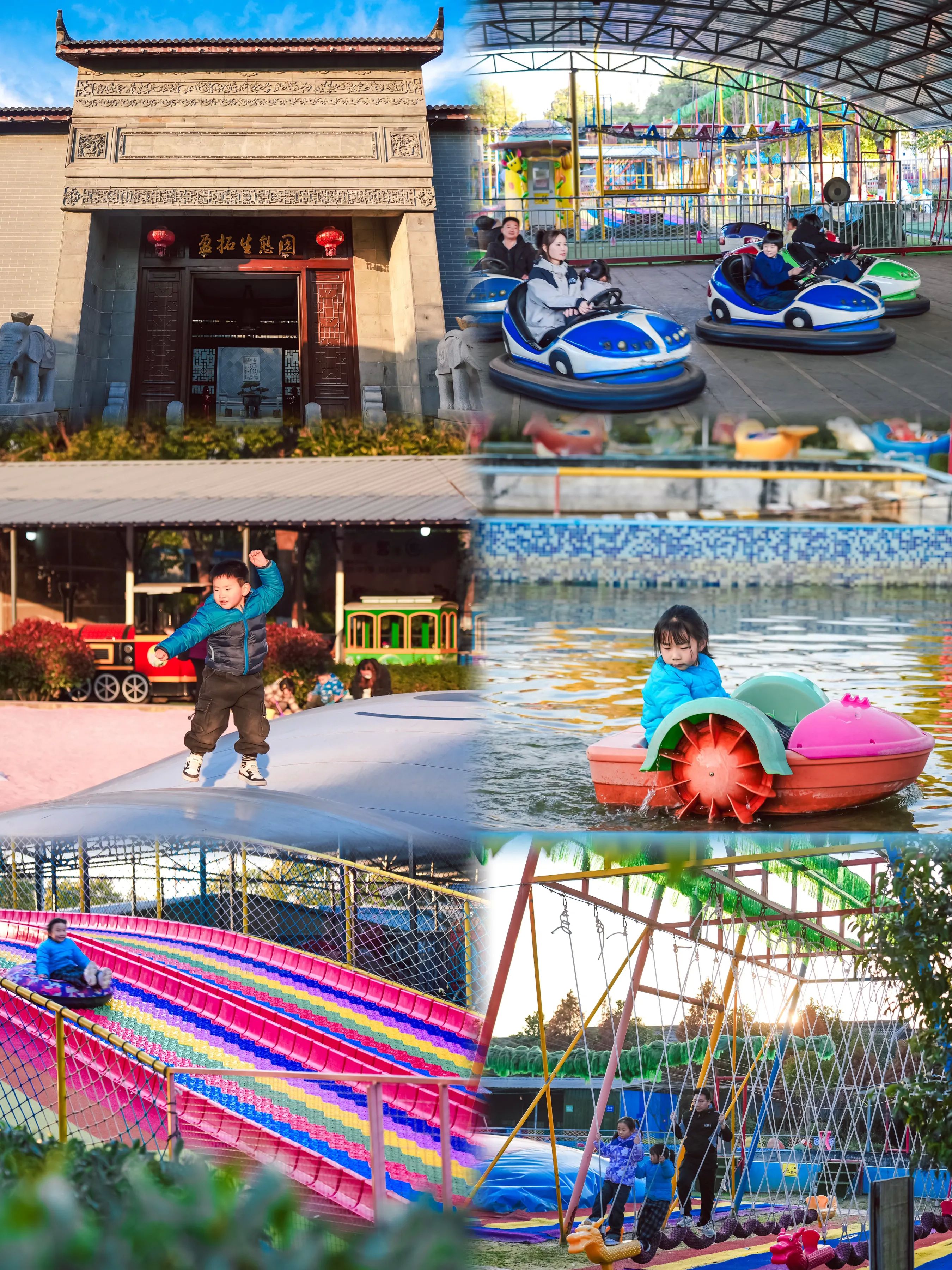 打卡盈拓生态园游乐场,设施多样,大人小孩都能玩嗨。