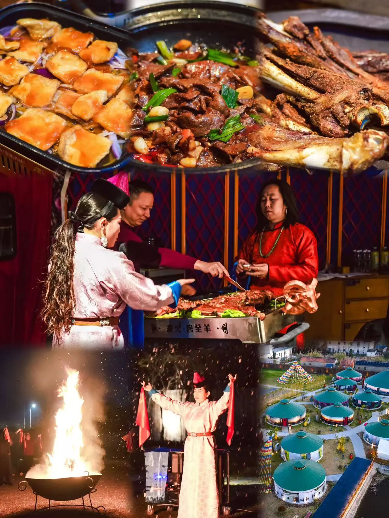 晚餐,一定要去尝尝满是蒙古风味的曲塘羊博士烤全羊,金黄油亮的烤羊架在火上,皮脆肉嫩,香气扑鼻,还有羊杂锅、羊血、曲塘臭豆腐等等,也是一绝,吃饱喝足,还能参与篝火晚会,看表演,特别有趣。
