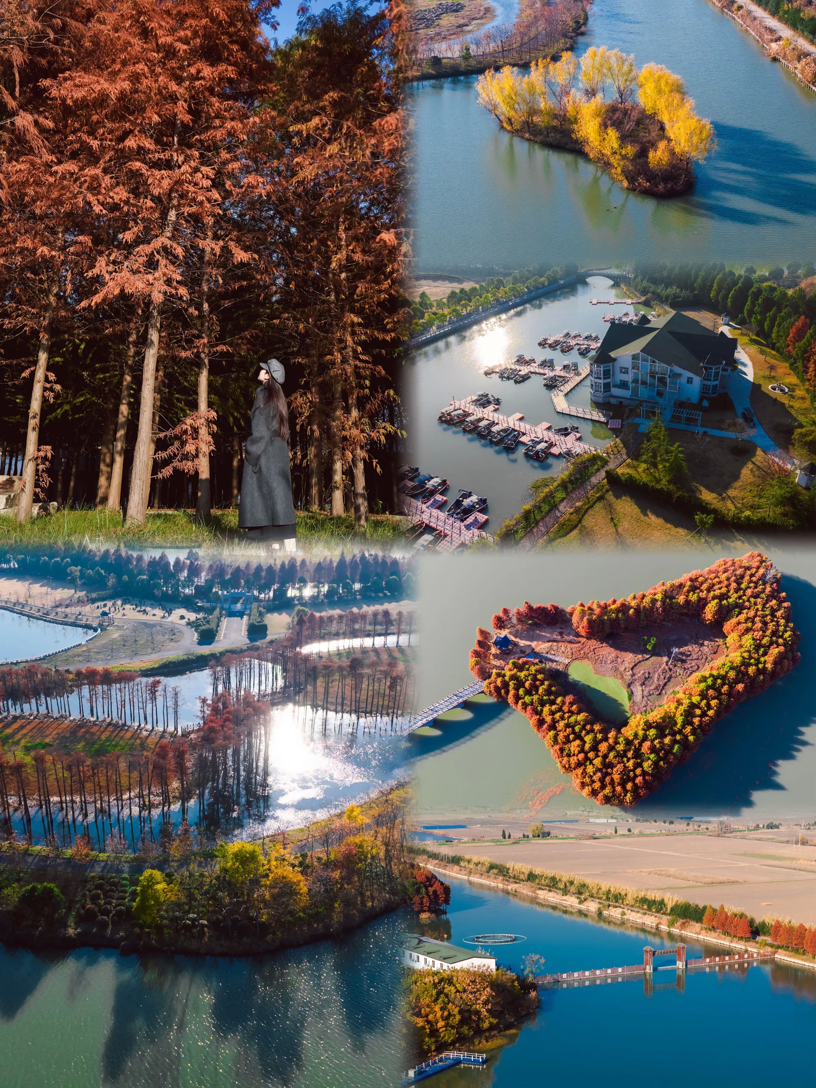这里绿树成荫,湖泊清澈,漫步其间,如置身一幅美丽的山水画卷,湖中的各个小岛、姿态各异,还有一片片水杉林,绽放着冬日之美。