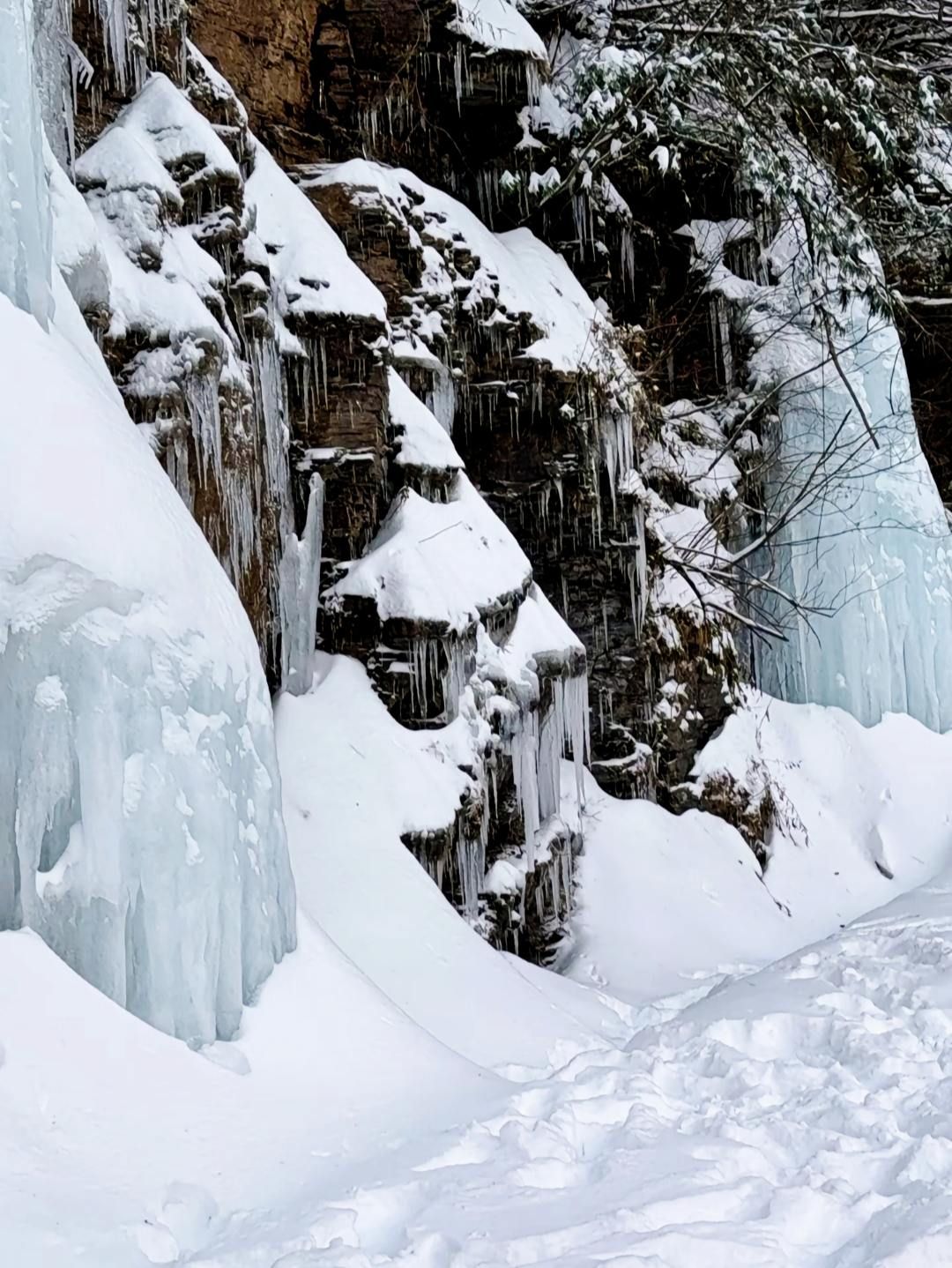 天燕景区:悬于两峰间的彩虹桥是俯瞰雪原的绝佳机位,燕子洞外雾凇配金丝燕呢喃,氛围感拉满