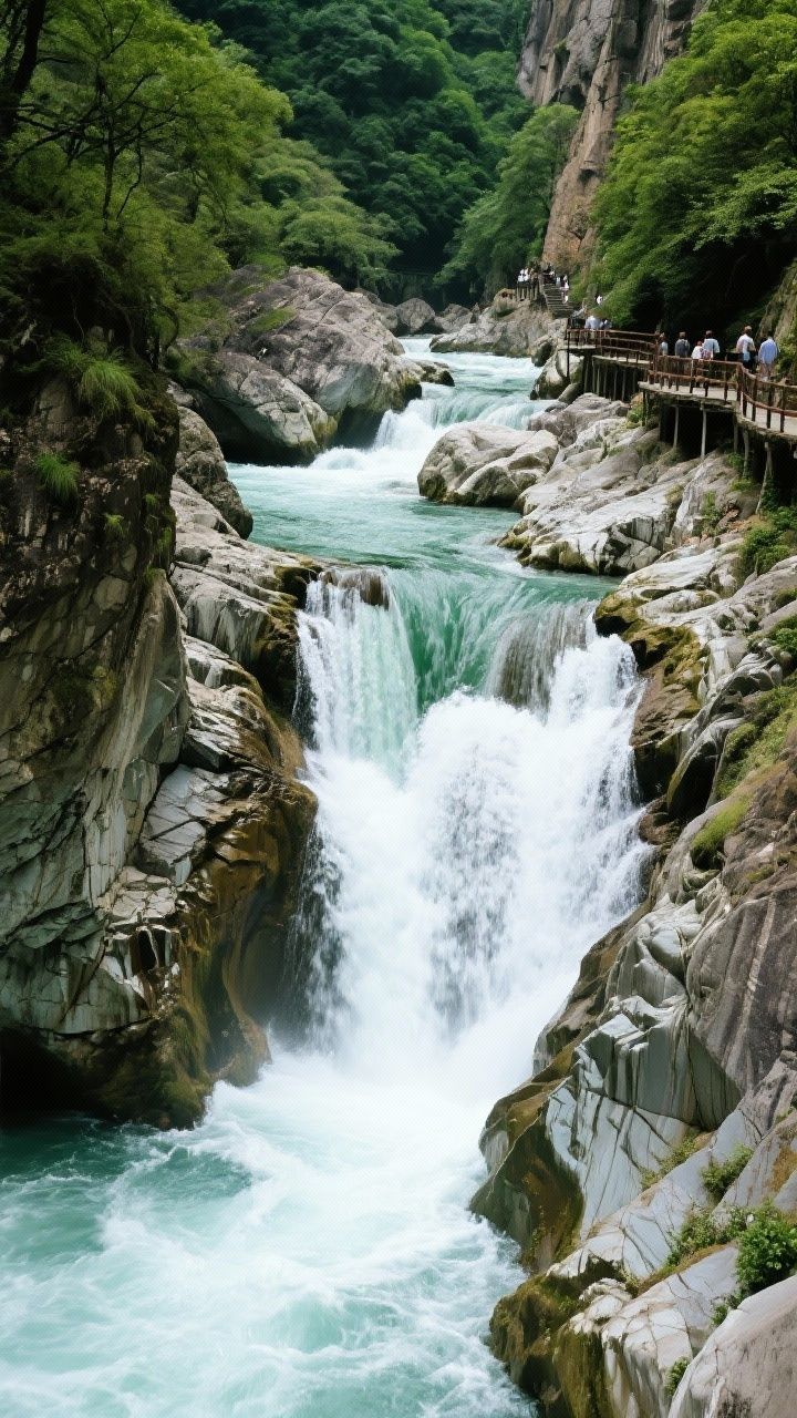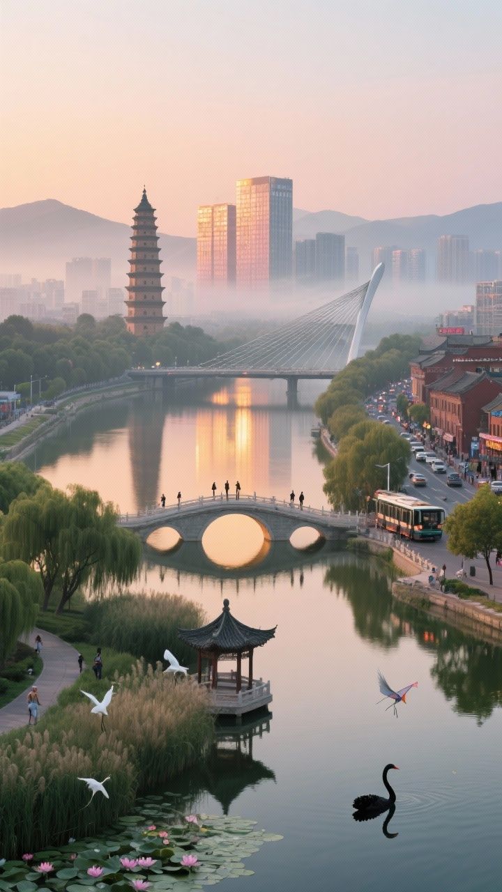 -鱼沼飞梁:34根石柱撑起十字桥面,柱头斗拱承托飞檐,宛如一只青铜大鸟欲离水而起;