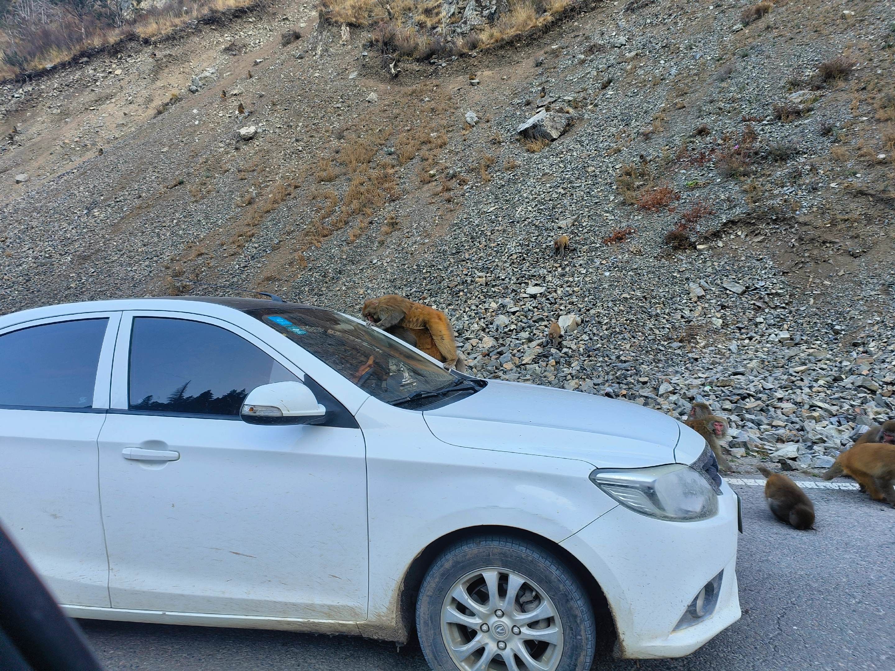 色达县往南有条548国道,走一点就能往东拐到317国道上。317国道比318国道的景色差远了,我都懒得拍。不过昨天在去色达的455省道上被猴子收了过路费,结果今天走色达的这条548国道又碰到另一波猴子打劫。这波猴子比昨天的凶悍,都开始跳上车抢东西了。好在周边车多,猴子没顾上我,我跑的比较快。