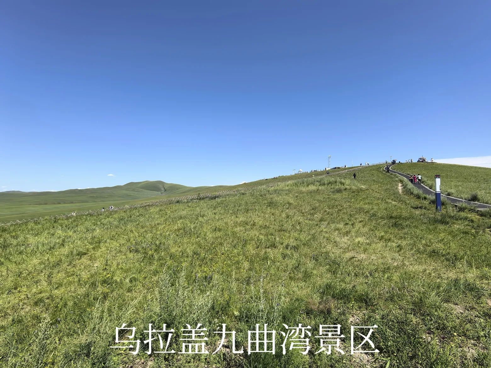 其实乌拉盖河(乌拉盖湖的水源来水),在草原谷地全是弯弯曲曲的样貌,何止九曲十八弯!九曲湾景区开发相对较早,有了些名气,实际上游客在观景平台上,除了下过连续暴雨后的涨水期,其实是看不到景区宣传片中所展示的美景的。当然,可以乘景区的直升机或动力伞到空中去,俯瞰乌拉盖河,估计景色会不错。但有这种胆量且愿意再多花不少银子的人毕竟是少数。