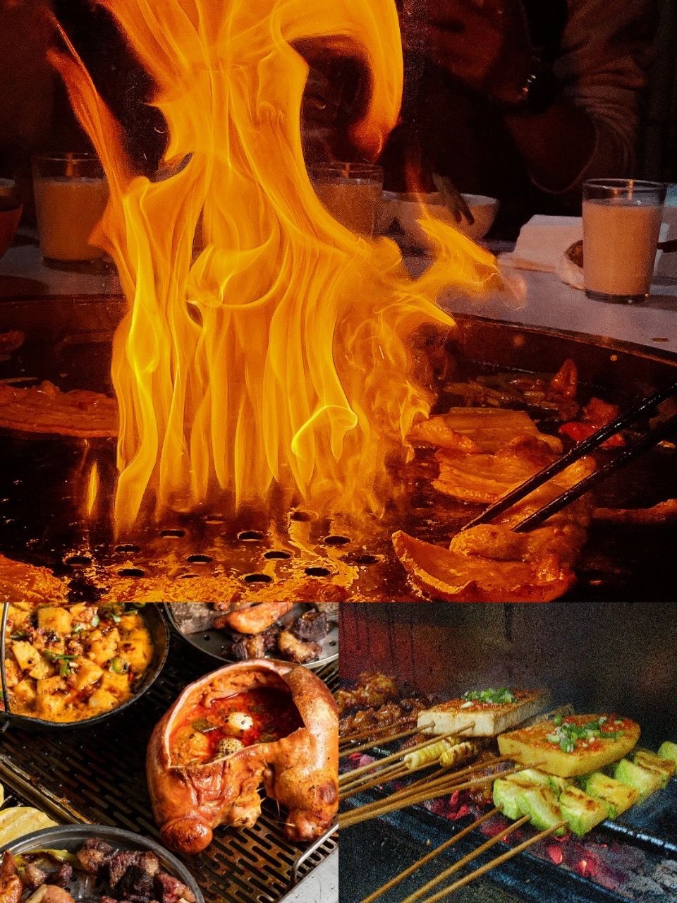 必吃!!石棉火上飘,视觉与味觉的双重盛宴,五花肉滋滋冒油,鱼片嫩到飞起!推荐 【三百烧烤】或 【浩文烧烤】,本地人扎堆的地道美味!