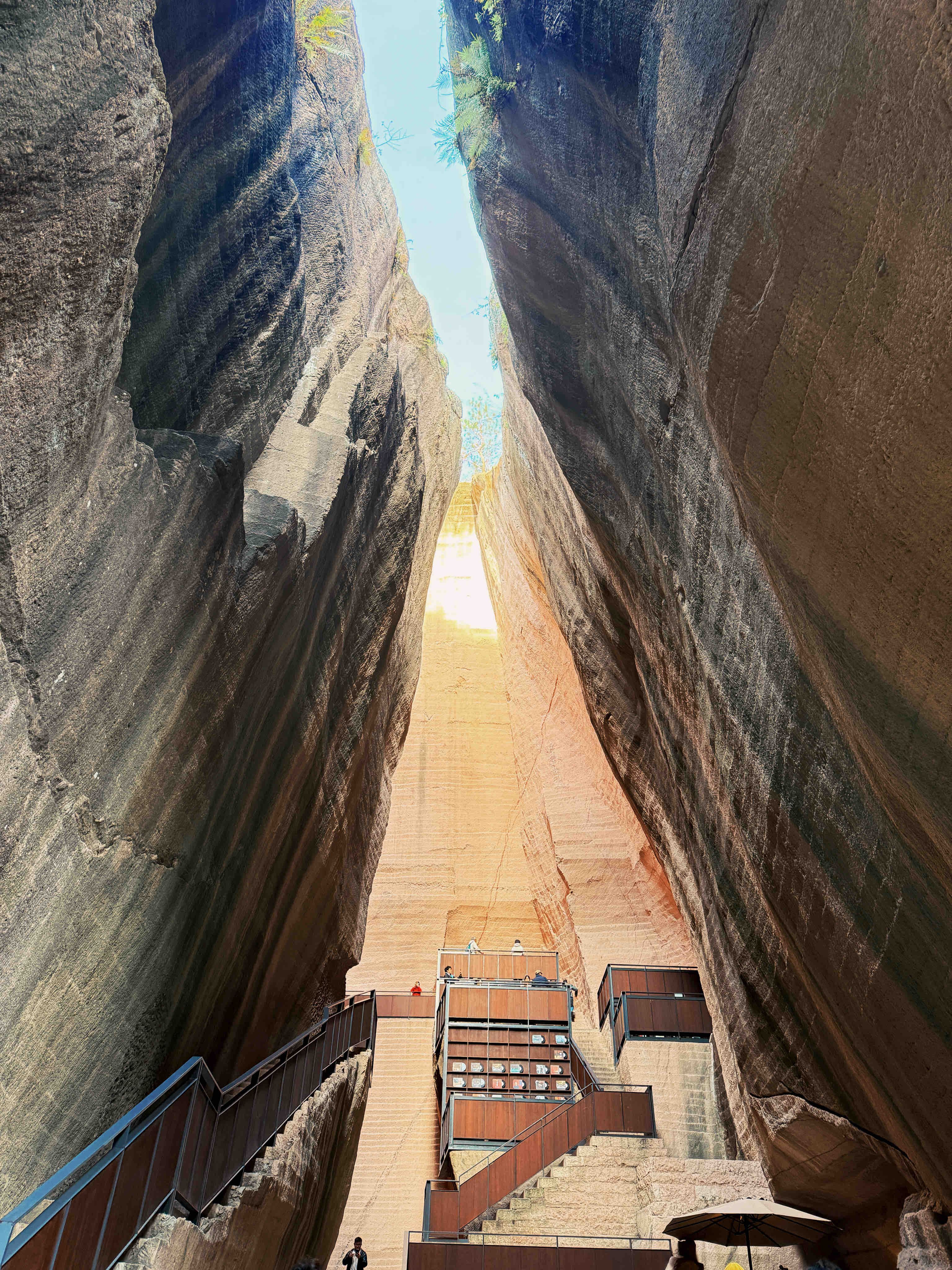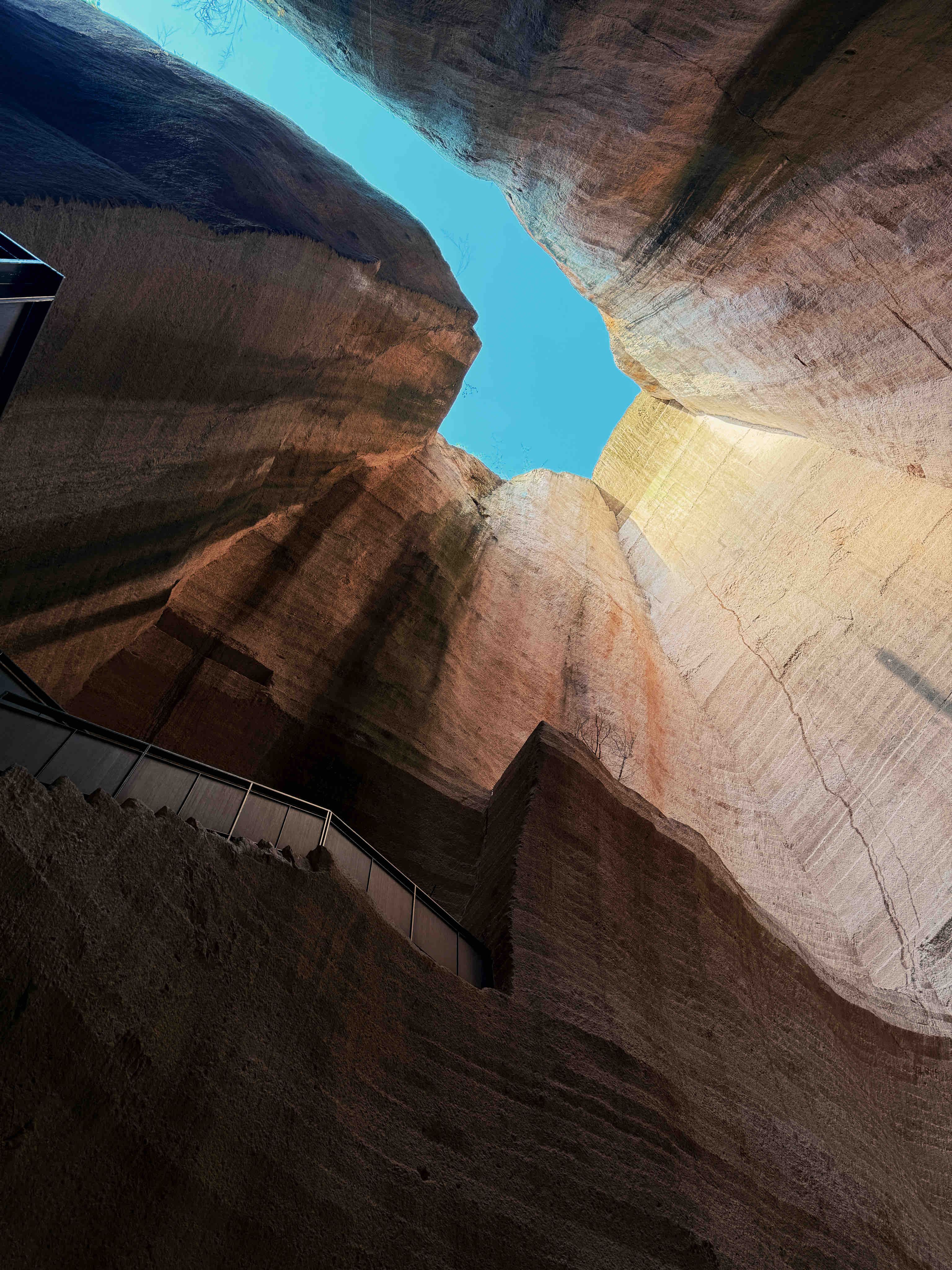 开车五分钟来到了“岩宕书房”,是一个以山体本身为容器的书屋,阳光照射下的石缝让我们拍出了文艺感,姐姐们都轮流拍了游客照,内心OS:来了必须打卡[机智][呲牙]