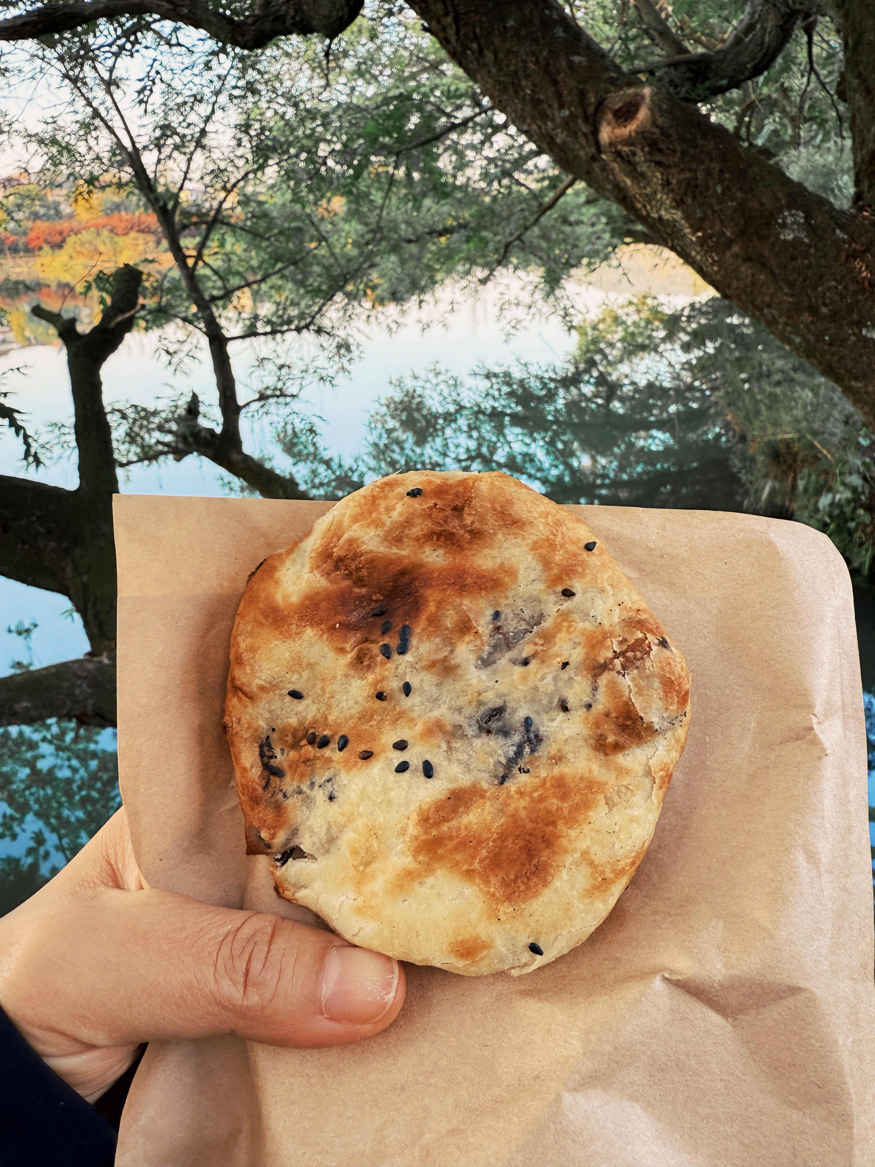 一上车大家都异口同声说先要尝一尝缙云烧饼。小刘师傅说不要路边买,去一家有特色的烧饼店。他还顺便聊起,他小时候也是考试得满分大人才会奖励一个[石化]