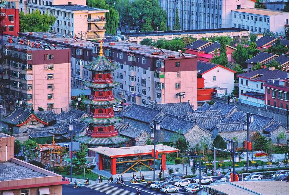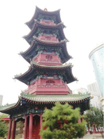 天王殿紧邻山门,单檐硬山顶形制简洁,殿内供奉弥勒佛、韦陀菩萨与四大天王造像。弥勒佛袒胸露腹、笑口常开,传递“大肚能容”的禅理;四大天王手持法器、神态威严,寓意“风调雨顺”;韦陀菩萨手持金刚杵,守护寺院清静。钟鼓楼分列山门两侧,二层阁楼式结构飞檐翘角,清晨与黄昏时,钟声悠扬、鼓声洪亮,回荡在并州街巷,传递祈福纳祥之意。