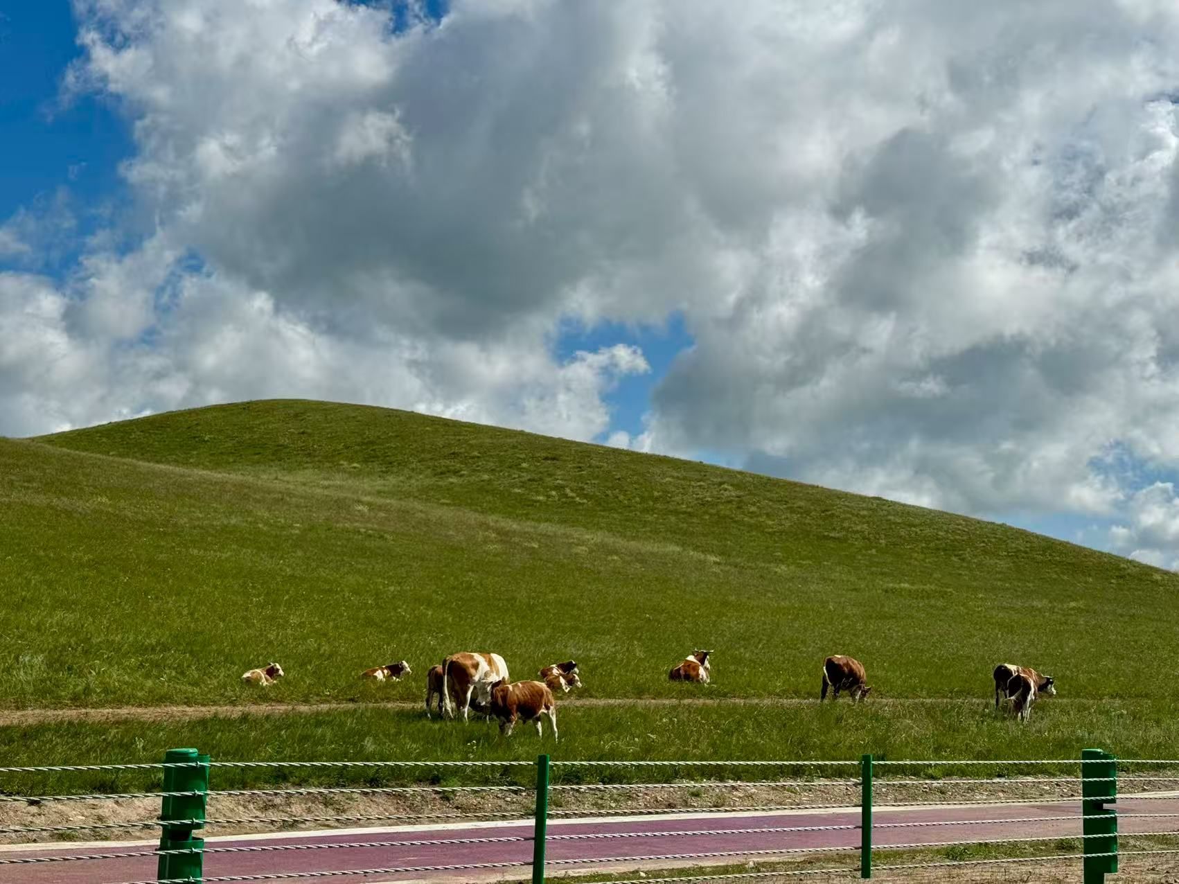 沿着达达线往北走,去阿斯石林终点,一路下来是真美。路边找个牧场骑马,玩牛羊。哈哈。达达线约往北越漂亮。一望无际的草原。一路经历了大雨中的草原,雨过天晴的草原,夜晚的草原,哪个月亮是真的大。走完达达线往北走去住西坞镇了,为第三天走99号公路做准备