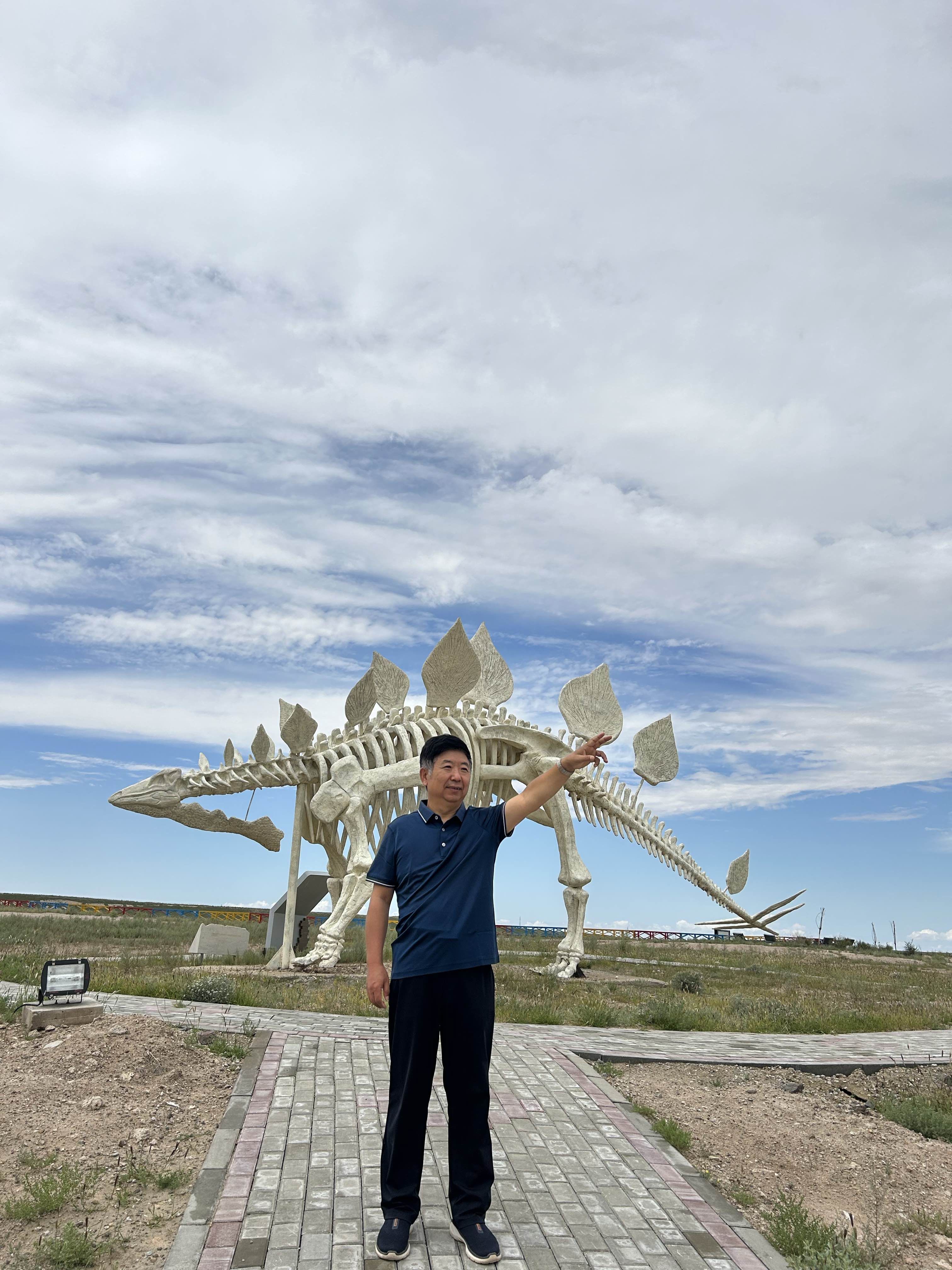 离开国门,我们去了东北郊的恐龙地质公园。园区属于新建,走一圈不算累,里面有不少大型的恐龙造型塑像。一处展厅的玻璃罩里,恐龙的骨骼一节节显示,仿佛能看见亿万年前的恐龙时代。