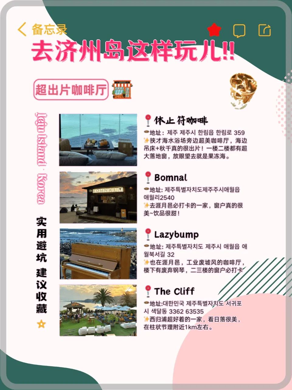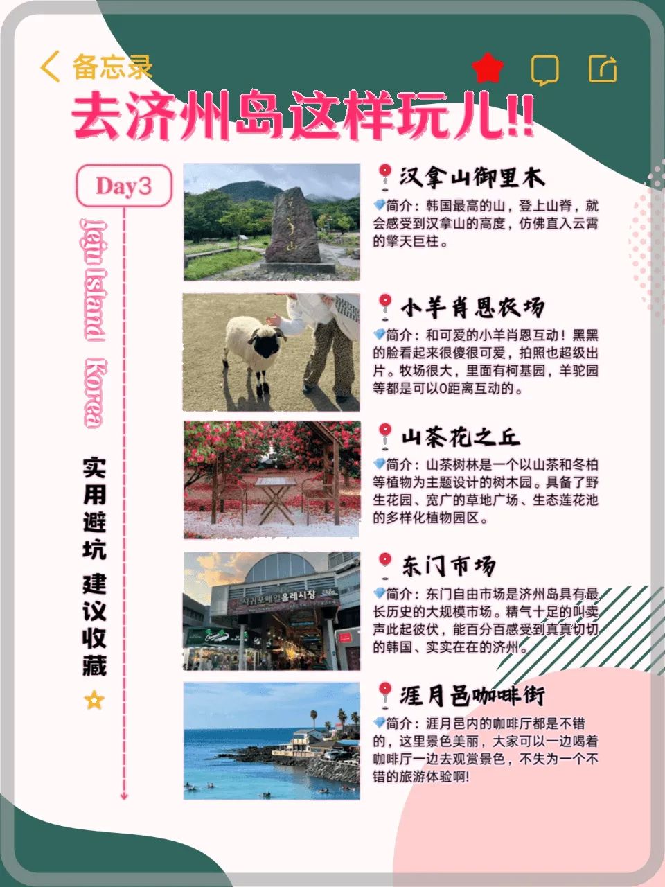 济州岛是韩国的一个度假胜地,以其美丽的自然风光、独特的文化和美食而闻名。六刷济州岛的老玩家整理的这份超全攻略,能让第一次去济州岛的人避开踩坑,玩出新花样。攻略包含了出行准备、景点行程、网红咖啡厅推荐、必吃美食清单和实用小贴士等内容。