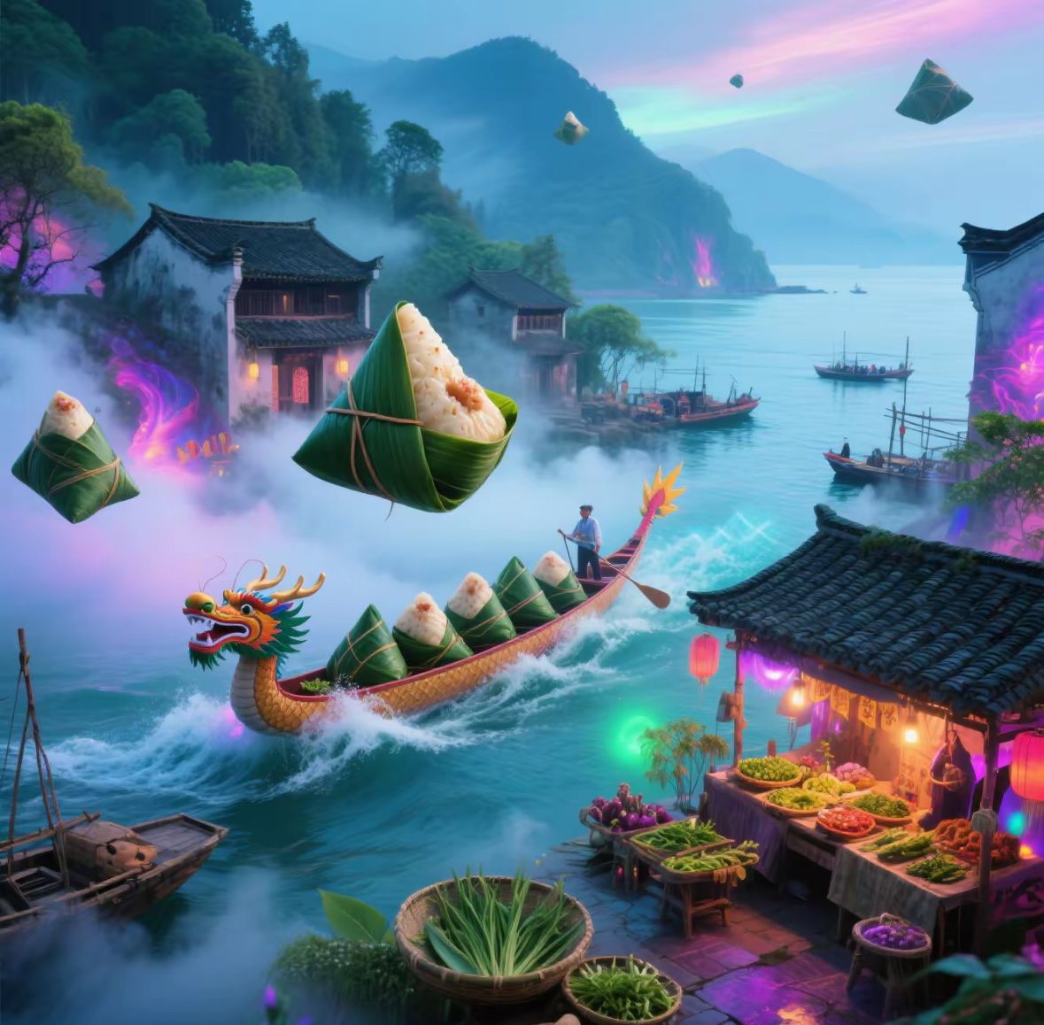 黄山脚下的南屏古村,白墙黛瓦间飘荡着新鲜粽叶香。村中老作坊开放体验活动,游客可亲手制作徽州特色的“灰汁粽”——以草木灰水浸泡糯米,包裹鲜肉与梅干菜,柴火灶蒸煮四小时,咸香软糯中藏着百年技艺传承。午后漫步青石板路,看老人们用艾草编织香囊,或许能偶遇一场原汁原味的龙舟祭祀仪式。