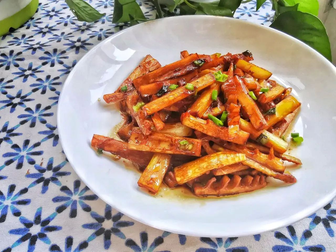 这种笋丝与五花肉一起煮,猪肉不再油腻,笋丝则吃进了肉味,两者互相渗透,味道非常好。