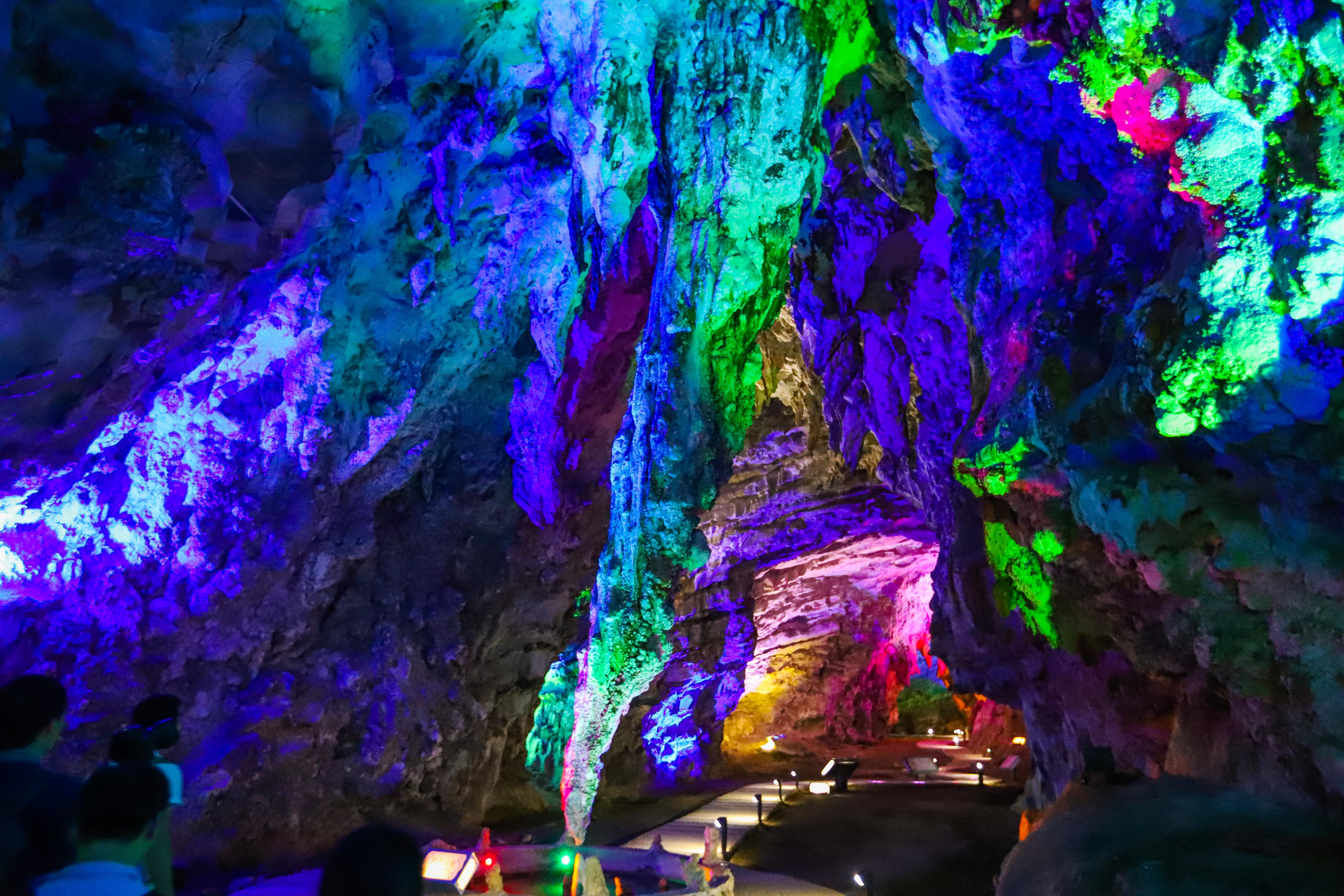吉星岩就是各种钟乳石在灯光照射下,色彩斑斓、如同进入海底龙宫一样,神秘又美丽。