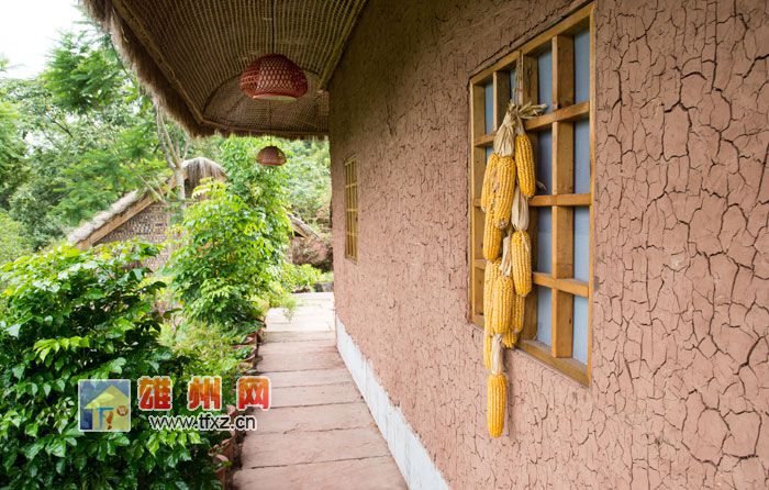 茅屋小院周围满是鲜花、多肉,