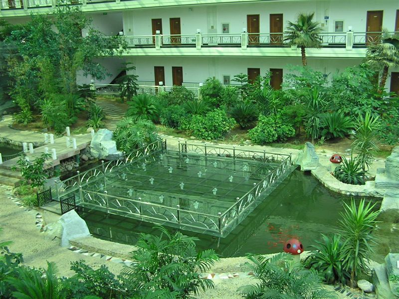 中心有宾馆一座,别墅九栋,150个标准床位;“游园垂钓人间境,闲情逸致快活林”。山庄周边以自然和人工绿化相结合,生长着数万棵松柏、龙爪槐、爬山虎、山荞麦等树种植物。山庄依山而建,充分利用自然景色,依山傍水风景秀丽,是居家出行,休闲娱乐的好去处。