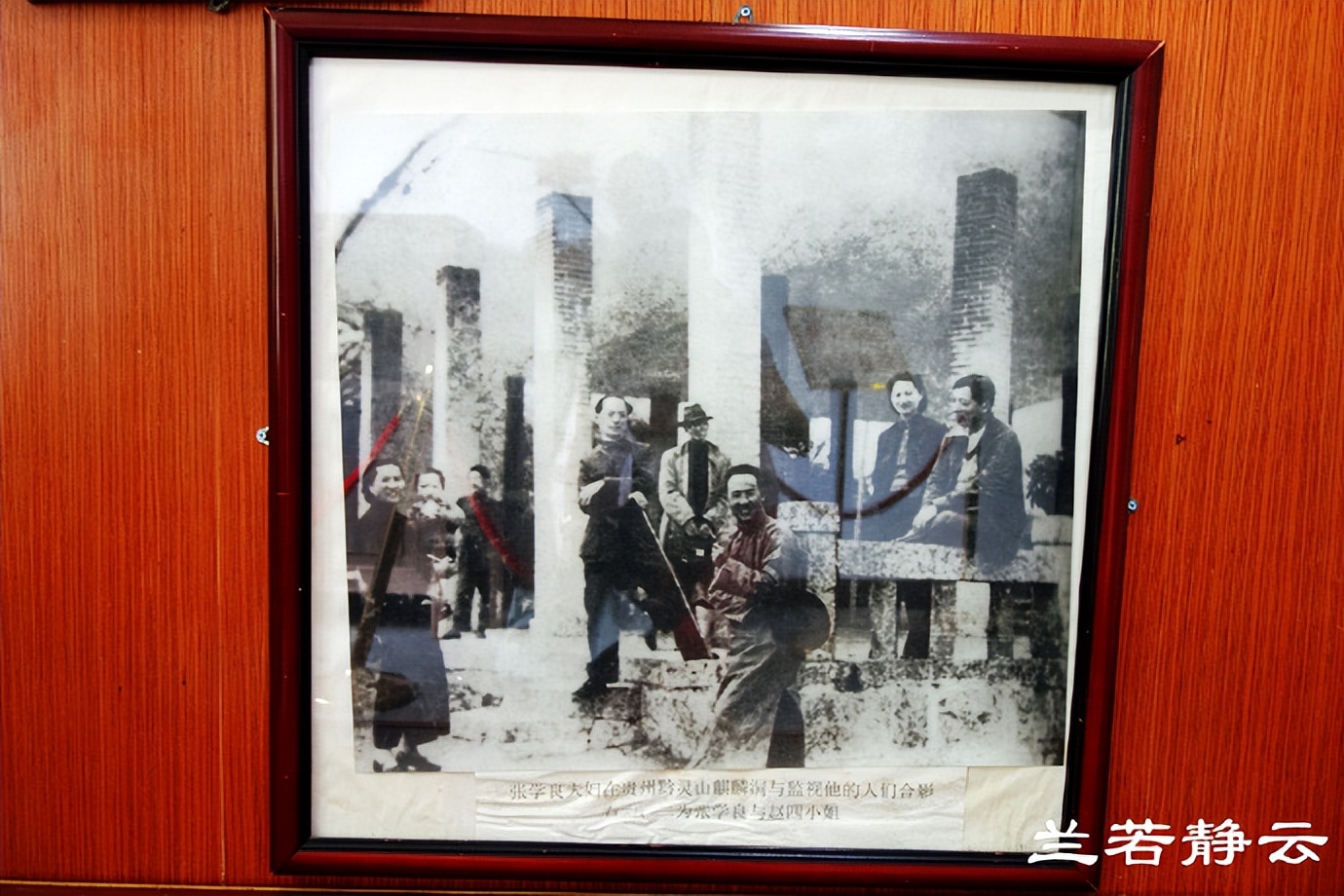 墙上挂着一张照片,最右边就是张学良和赵四小姐,这是当年他们在麒麟洞与监视他们的人合影。从照片上看人人脸上都挂满了笑容,气氛轻松,根本不像被软禁的样子,倒像是老朋友一起聚会过周末的感觉![偷笑]