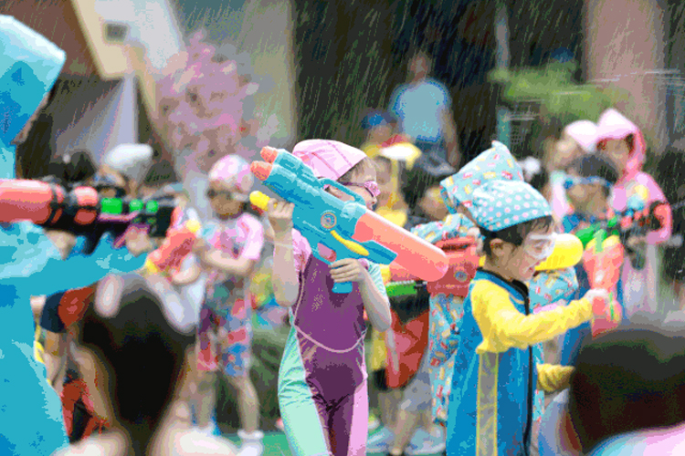 水枪、水桶、水盆、泡泡机、泡沫池、水球……各种装备应有尽有。长枪短炮的酷炫组合,雨衣泳镜一应俱全,相信没有小朋友可以抵御水枪大战的快乐。在这里,可以自制“筋斗云”,亦或变身可爱大白,让棉花糖般的泡沫在想象力作用下千变万化,趣味横生。在泡泡的世界里忘乎所有,拉进距离,尽情释放欢乐,各式各样的容器化作一切美好的载体,泼洒水花飞舞,嬉闹欢笑齐聚,气氛直推高潮。7月10日·11日,还有身穿傣族服装的小姐姐加入泼水狂欢,给泼水狂欢增添一抹别样风情。