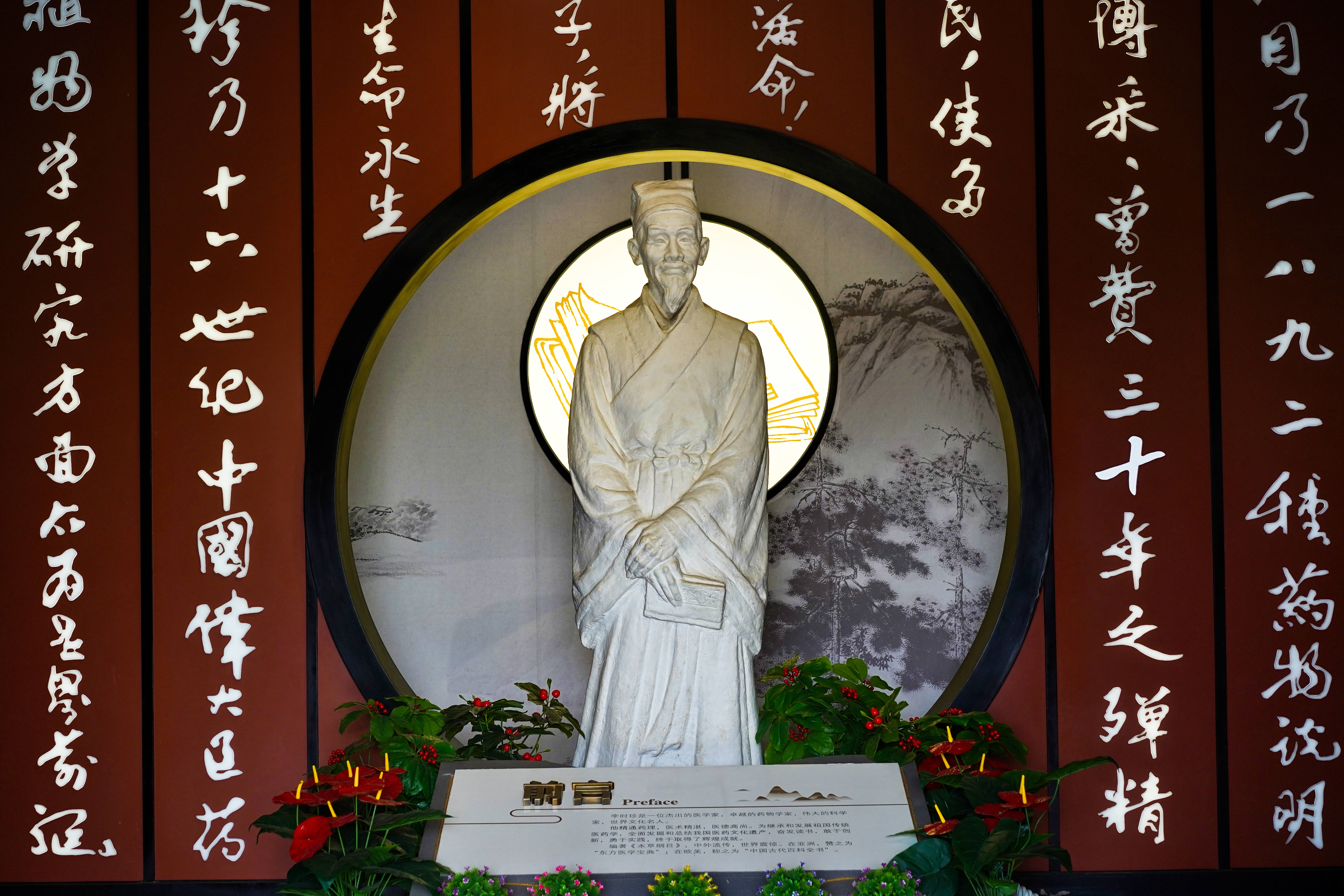 走进李时珍纪念馆,古朴而静谧,像一座园林,有庭院、花园、长廊,花园里栽种着数百种草药,左右两侧是本草碑廊,廊内镶嵌着90多块大理石,大理石上刻着《本草纲目》中草木药图,一幅幅看过去,感受着李时珍的刻苦钻研。