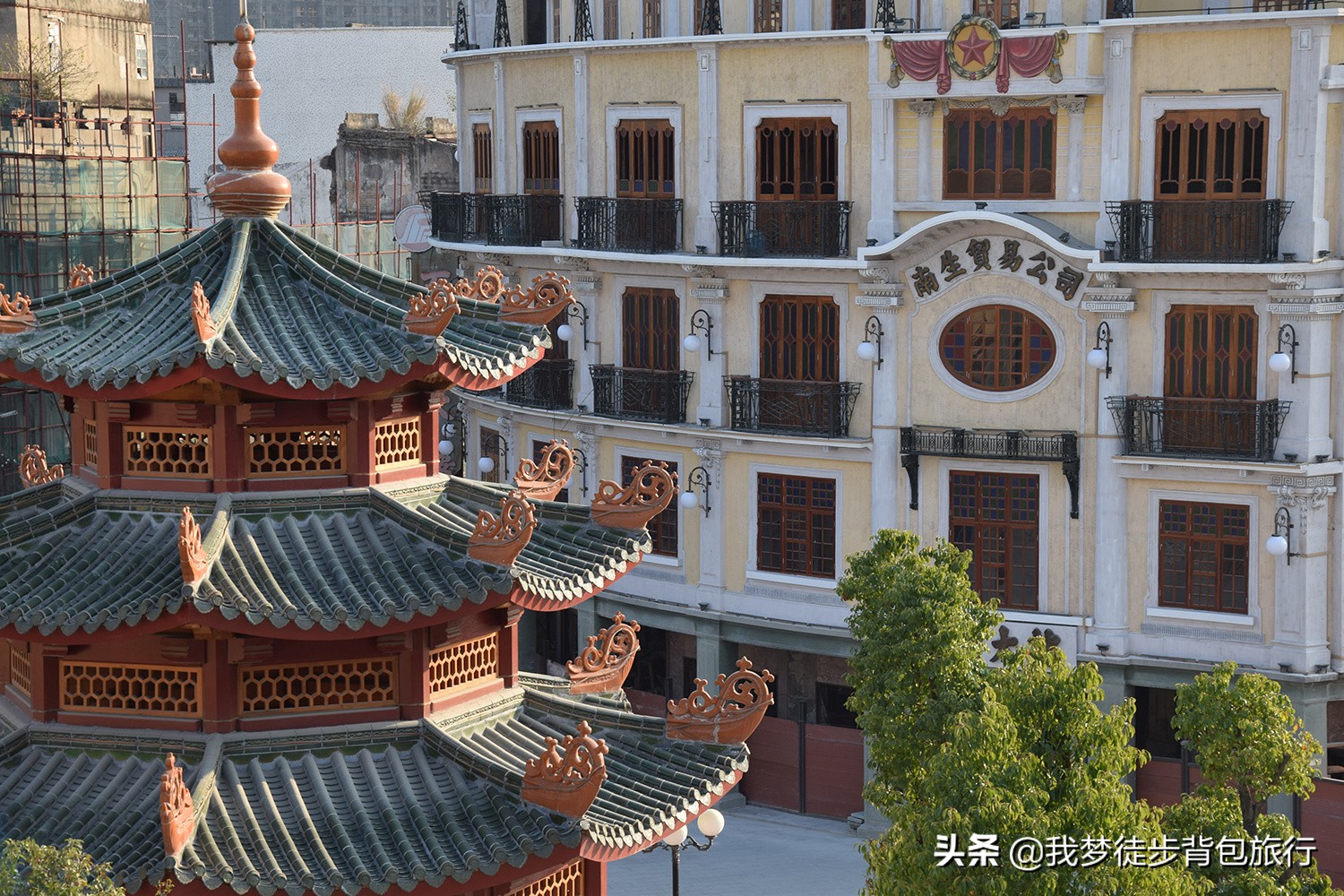 漫步其中,你可以看到马路边避雨的骑楼,鳞次栉比的老字号商铺,略显芜杂的街道,以及门窗附近古朴的装饰花纹,这些都透露出小城独特的历史风情。
