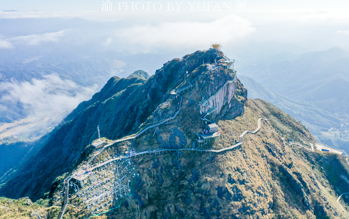索道上站是一个宽敞的观景平台,在这里任栏远眺,可以看到粤桂湘三省的美景,真有种“荡胸生曾云,决眦入归鸟。会当凌绝顶,一览众山小”的感觉。