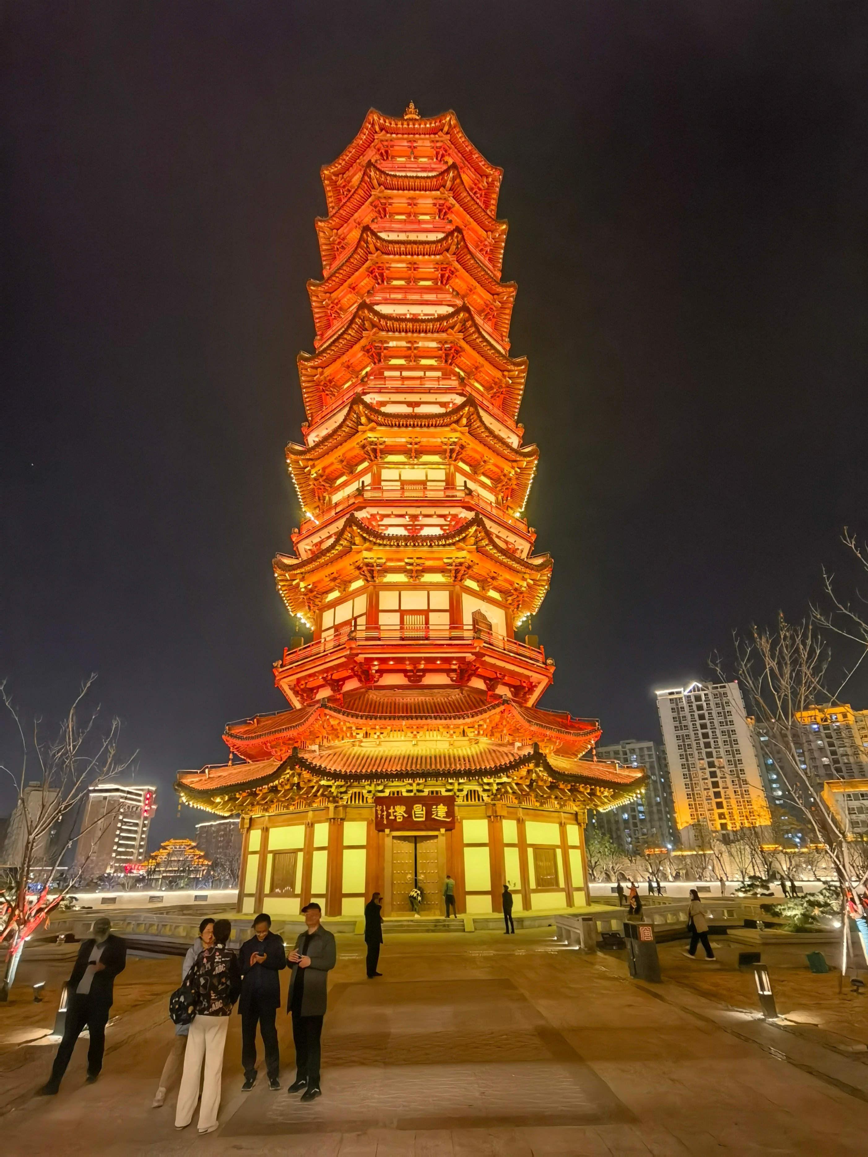 59.82米高的建昌塔最是吸引游人,美轮美奂的灯光把塔身变为红色、紫色、黄色,与对面的巂州阁、巂州楼交相辉映,把唐园打扮得更加妖娆、妩媚。