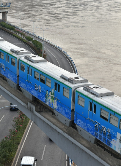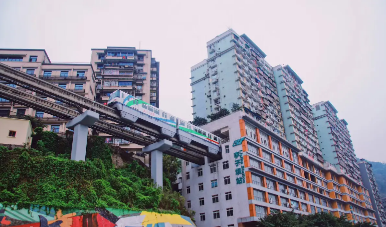 当然除了李子坝站外,重庆还有其它的轻轨也可以看到不一样的景观。