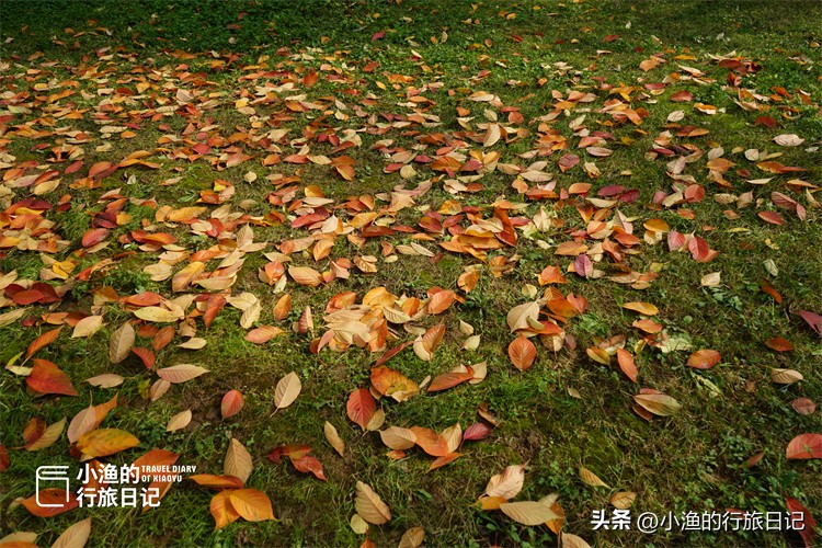 红叶与草坪。自然是最伟大的画师,随意一笔,都是绝佳的画面。