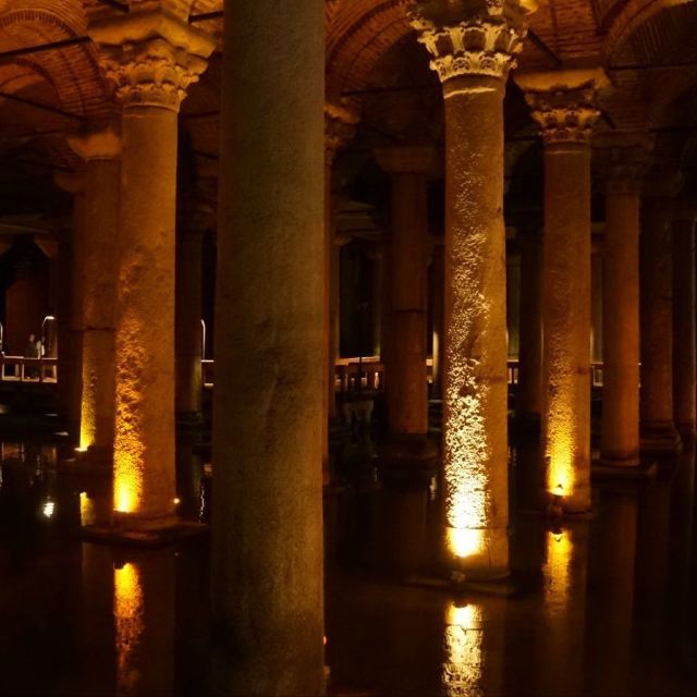 幽深的地下,昏暗的灯光,神秘又壮观。宫殿由 336 根巨大石柱构成,其中有一根石柱在哭泣,如今被视为许愿柱,在水宫西北角,有两根柱子下分别压着美杜莎的头颅。