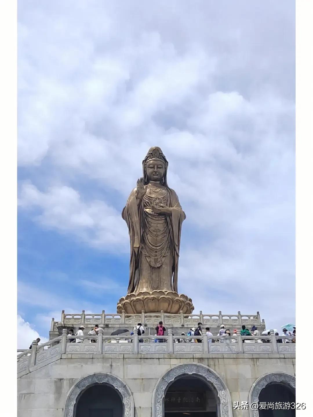 是普陀山标志性景观,也是游人礼佛朝圣必到之处。观音身长18米,左手托法伦,右手实无畏印,大慈大悲,光耀天日。
