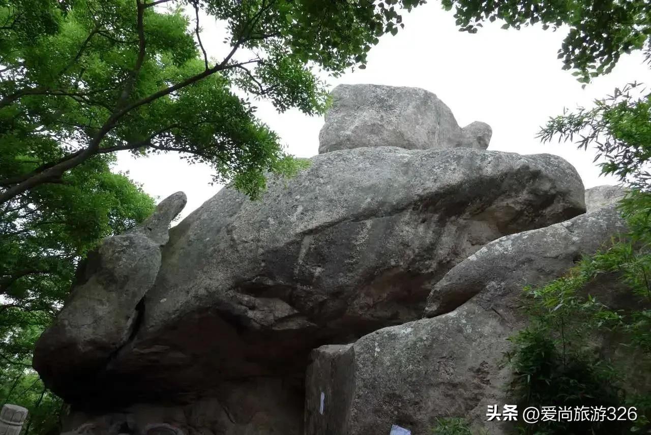 在普陀山梅岭的山顶平台上,有一对看似摇摇欲坠,实则稳如磐石的巨石——磐陀石,相传这里就是观音大士的说法处。