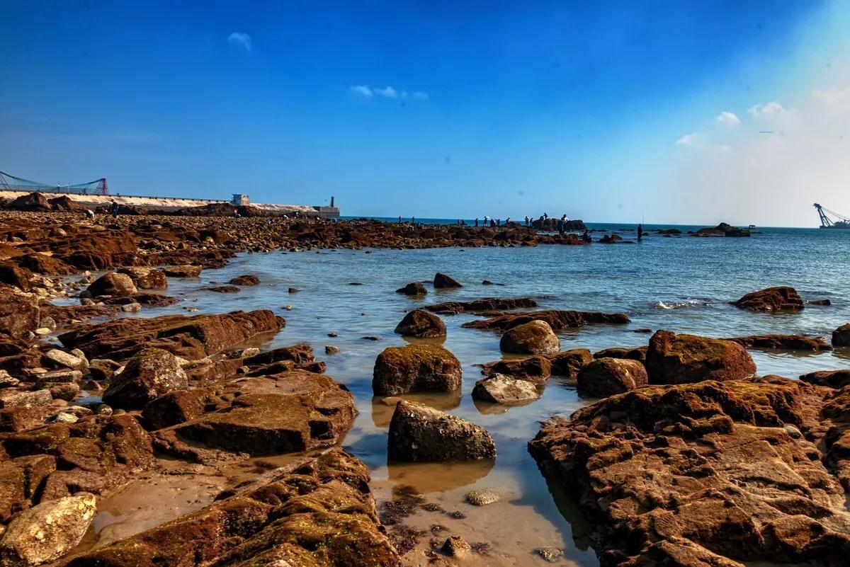 看日出拾贝壳,下午去则人少,有很多礁石,可以踩在脚下拍出唯美照片哦,沙子也是软绵绵的,很适合去游玩。