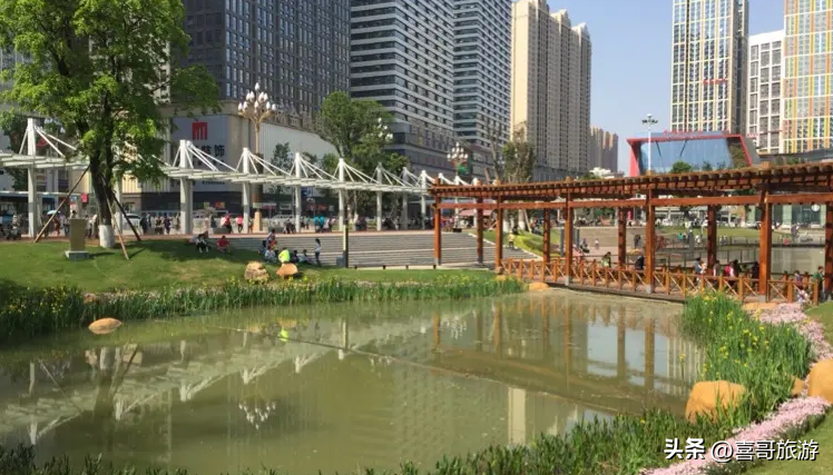 【花果园湿地公园】位于贵州省贵阳市南明区花果园大街1号。公园周边环抱相拥的是植被繁茂的云贵山等三座山。公园里,有千年古树银杏,吉祥如意的罗汉松,美丽迷人的老人葵,价值不菲的香樟树,十里飘香的桂花,它们同五颜六色的花草、湖中的鱼鸟、人行长廊、波光粼粼的湖面,一起组合成一幅美丽迷人的风景画。