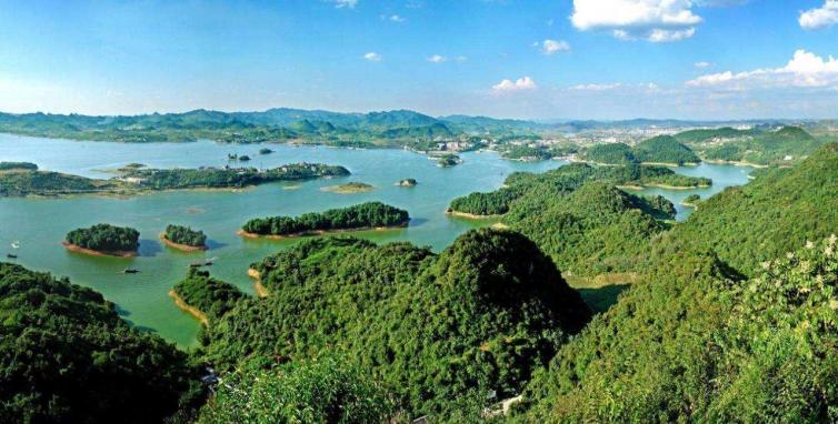 红枫湖系长江水系和珠江水系分水岭处的一个人工湖,青溪两岸层叠连绵的万重峰峦,被一池碧水淹没,形成了100多个大小各异的岛屿。泛舟此地,你不禁会想起郭沫若先生当年赞美千岛湖风光的一首诗句:“西子三千个,群山已失高,峰峦成岛屿,平地卷波涛。”