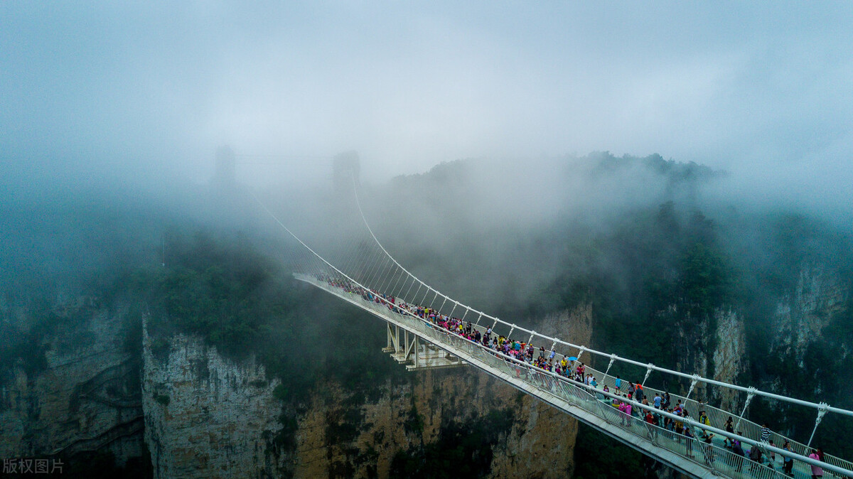 接着,我们进入了张家界国家森林公园,这里有着壮观的山峰、瀑布和峡谷。我们首先来到了被誉为“天下第一桥”的玻璃桥,这是一座高悬于峡谷之上的透明玻璃桥,非常惊险刺激。站在桥上,我们可以看到下面的深谷和漂亮的瀑布。