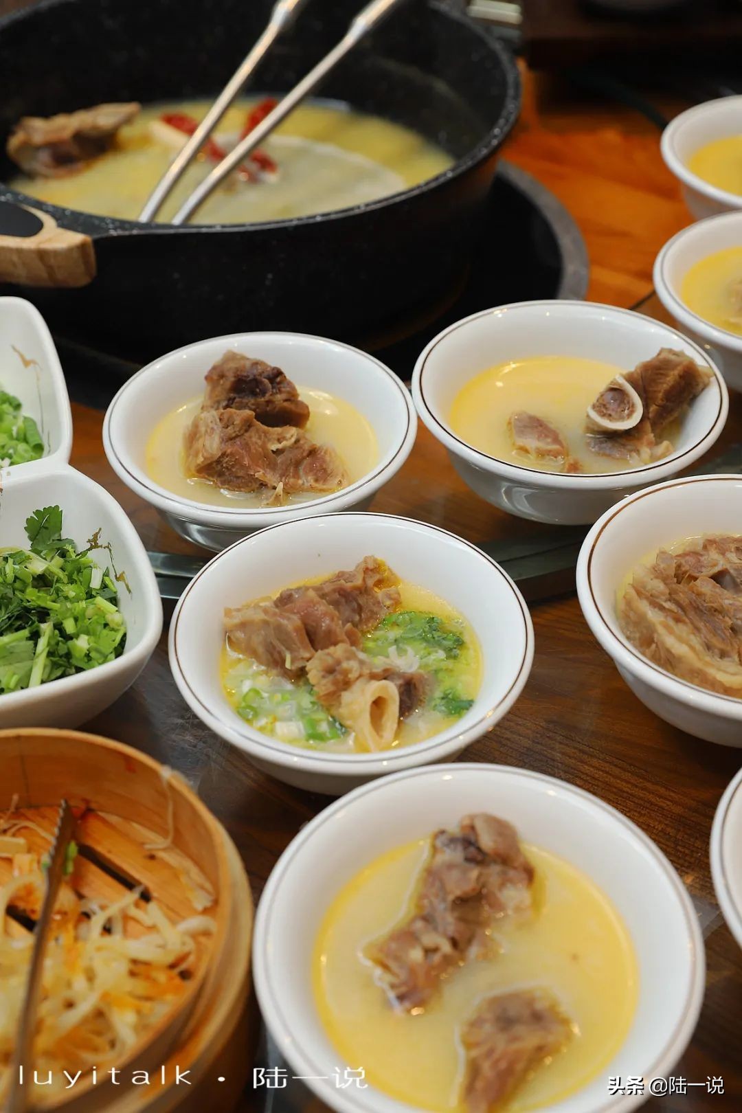 烤全羊虽已足够吸睛,但 铁锅炖小公羊 也自带星光,当晚在朋友圈就有有人紧追不舍要来一尝芳泽。300天的横山羊,9道工序,90分钟铁板慢炖,羊瑞堂专注烹羊30年的技艺加持。喝汤、吃肉、炖菜、扯面一气呵成,汤浓鲜,肉细嫩,面劲道,可一试。